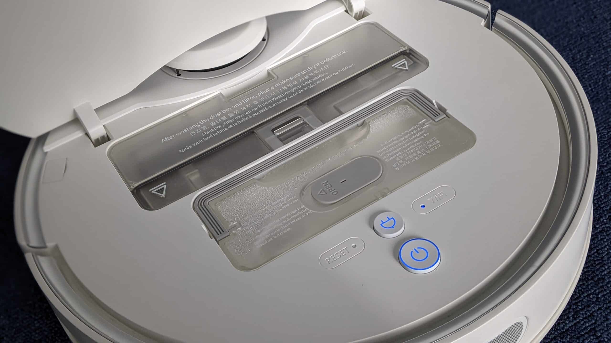 Robotul de aspirare are un design elegant, finuț, o combinație de nuanțe alb cu gri. Față de modelul anterior design-ul a suferit mici modificări. Senzorul LIDAR a fost mutat mai înspre margine, iar panoul de control se regăsește acum în partea opusă. Mop-ul a suferit și el modificări. Dacă varianta anterioară era dotată cu un sistem de ștergere care mai mult aduna praful depus pe podea, ei bine, acum vedem un nou sistem de ștergere pe 360 S9. De această dată, roboțelul include un tanc de apă cu o capacitate de 200 ml, ce se regăsește în apropierea boxului de colectare. Poate că nu este cel mai generos rezervor de apă, dar până la urmă mai importantă este eficiența cu care folosește apa pentru ștergerea podelei. Recipientul de colectare are o capacitate de 420l, suficient cât să aspire o suprafață generoasă. Eu aspir cam de două ori un apartament de 60 mp, după care golesc recipientul de colectare. Dar nu-i bai, dacă nu-ți amintești, roboțelul are grijă să te anunțe atunci când este cazul să îl golești.