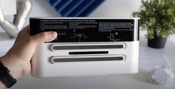 Roboțelul vine cu o mulțime de accesorii. În cutie vei găsi: manualul de utilizare, garanția, o pungă cu ștechere pentru orice tip de priză, o cutie cu încărcătorul, dock-ul de încărcare, mopul cu două lavete de șters, o telecomandă,  cu ajutorul căreia putem controla manual roboțelul de aspirare, o rezervă pentru peria laterală, cea care trage resturile din lateral înspre aspirator și bineînțeles roboțelul de aspirare, care include la interior și un sticker simpatic și un pieptene de curățat. Peria principala este deja montata pe robot, iar recipientul de colectare, împreuna cu filtrul hepa sunt si ele pe poziție. Ca o paranteză, filtrul Hepa este lavabil, tot ce ai de făcut este să îl cureți de praf înainte de a-l introduce sub jetul de apă și după spălare să îl pui la uscat.