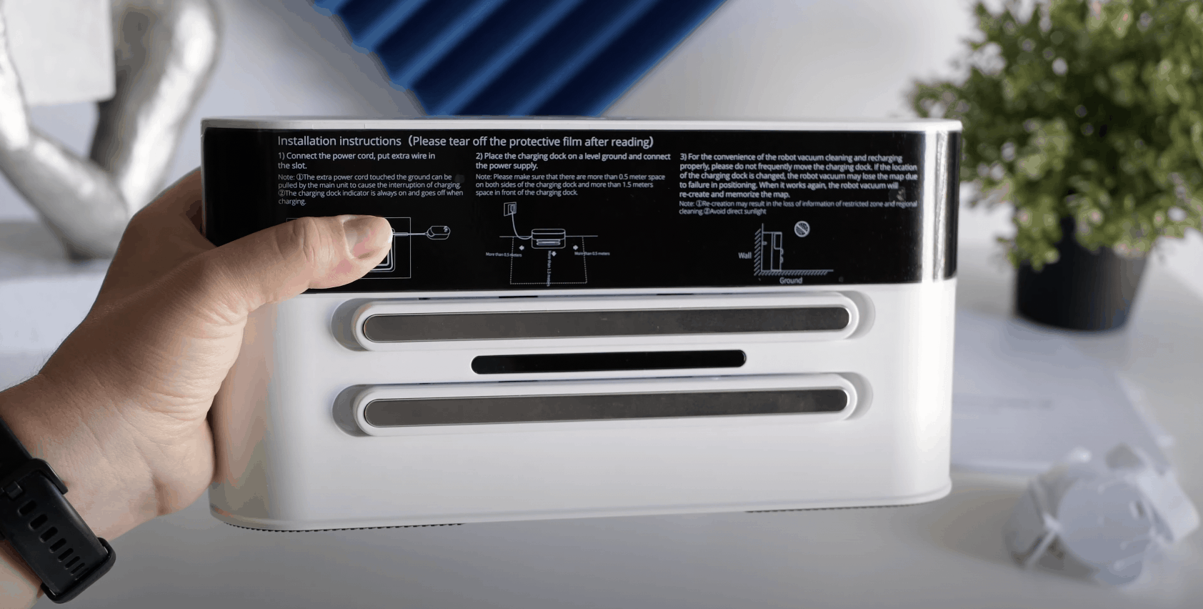 Montarea roboțelului este simplă. Atașezi ștecherul potrivit la încărcător, conectezi cablul de încărcare la docul de încărcare și poziționezi roboțelul astfel încât pinii metalici de pe dock sa se conecteze cu pinii de pe roboțel. Dupa ce ai făcut acești pași poți umple si recipientul cu apa si sa ii atașezi cârpa daca vrei sa beneficiezi si de funcția mop. Urmează conectarea la internet prin aplicația 360. Conectarea este opțională, dar eu ți-o recomand în cazul în care vrei să beneficiezi de toată partea smart a acestui roboțel. În cazul în care nu ești interesat de acest aspect, roboțelul vine cu două butoane de control, unul de oprire/pornire la apăsare lunga si de pornire/oprire aspirare la apăsare scurta și prin apăsarea celui de-al doilea buton îi poți comanda întoarcerea la docul de încărcare.