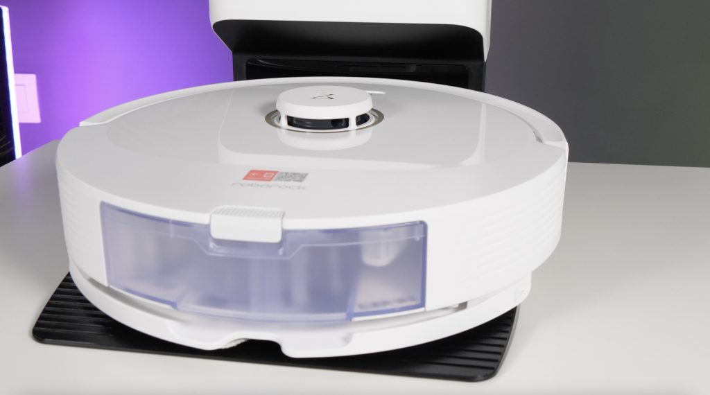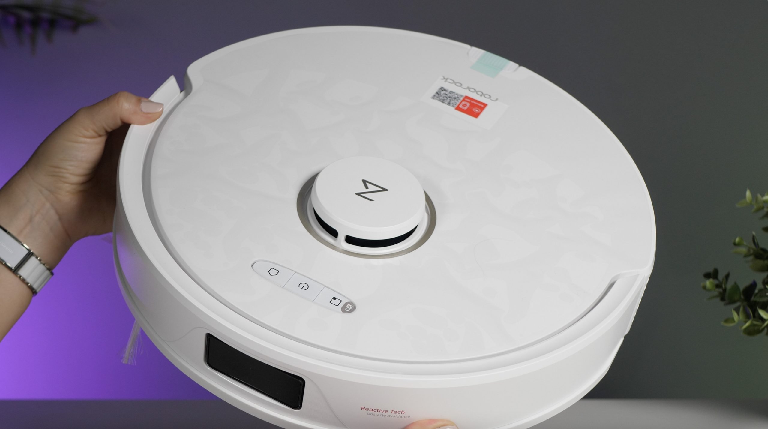 Robotul are dimensiuni compacte, măsurând 96.5 mm înălțime, ceea ce îl face suficient de subțire pentru a intra sub majoritatea pieselor de mobilier. Stația de golire este, de asemenea, bine construită, cu un mâner superior care facilitează accesul la sacul de praf. Minimalismul robotului, îl face să se integreze fără probleme în orice locuință modernă. Rezervorul este 2 în 1, compartimentat pentru praf și apă. Capacitatea lui este de 470 ml.