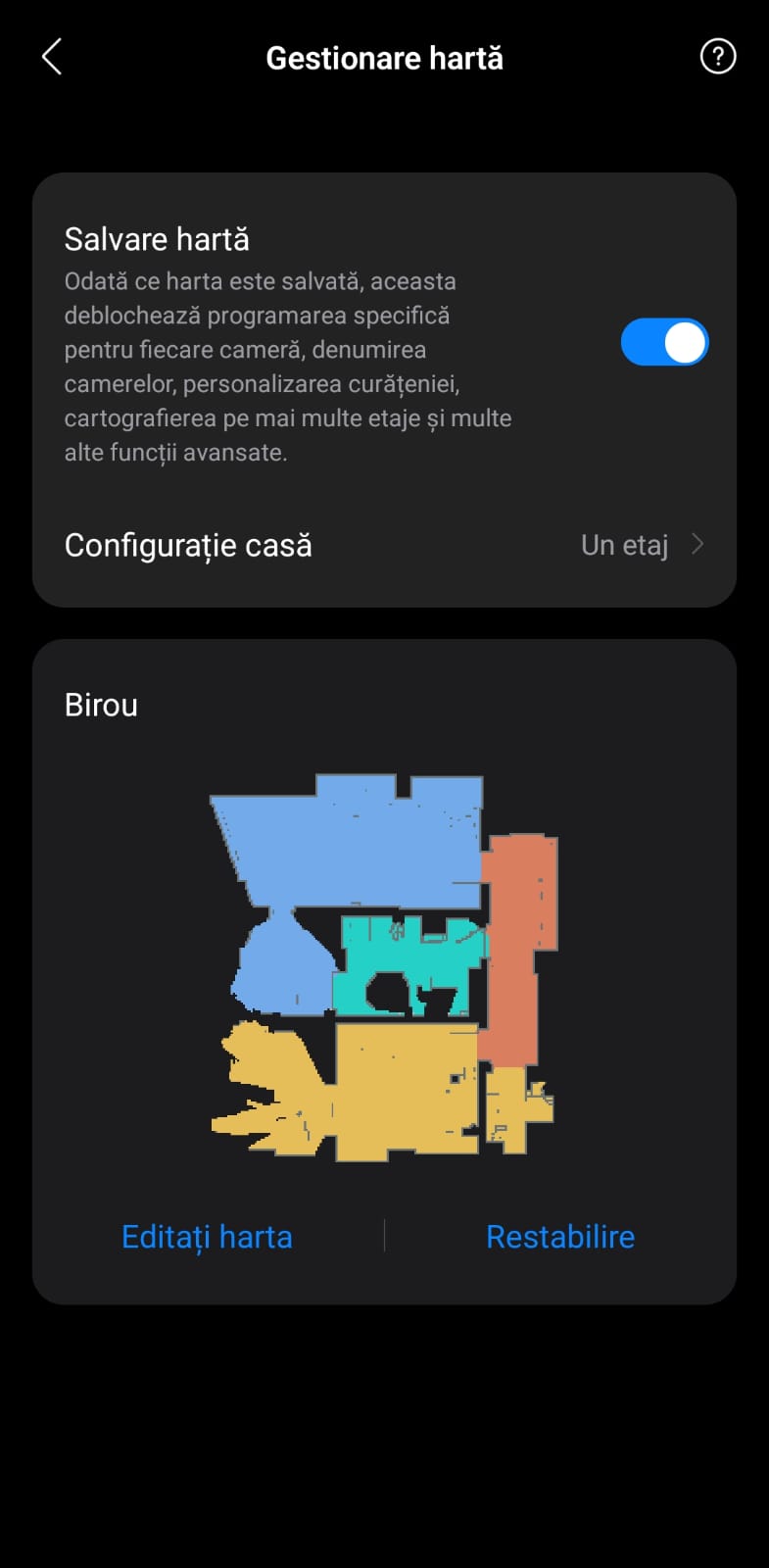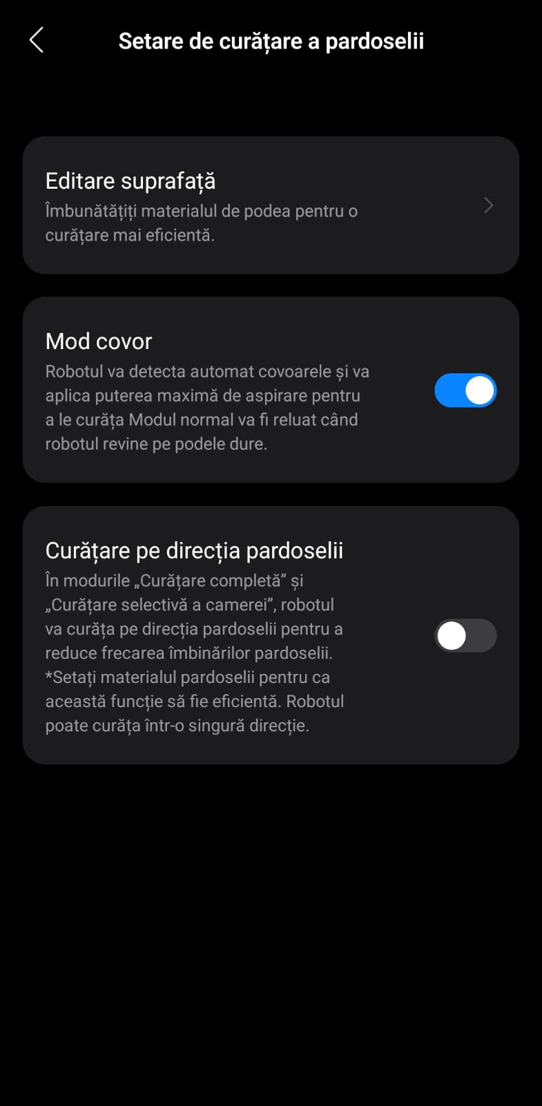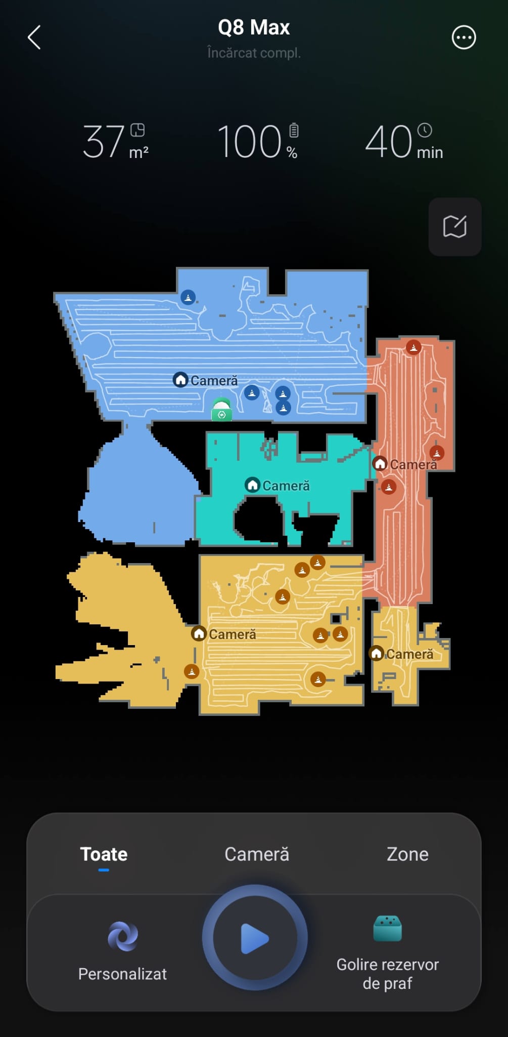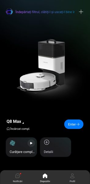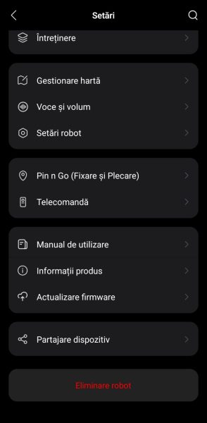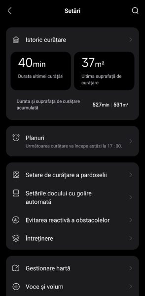 Aceasta este mai mult decât un simplu hub de control – este un instrument puternic care îți oferă acces la toate funcțiile robotului, personalizând experiența curățeniei în funcție de nevoile tale. Interfața aplicației este foarte prietenoasă chiar și pentru utilizatorii mai puțin familiarizați cu tehnologia.
