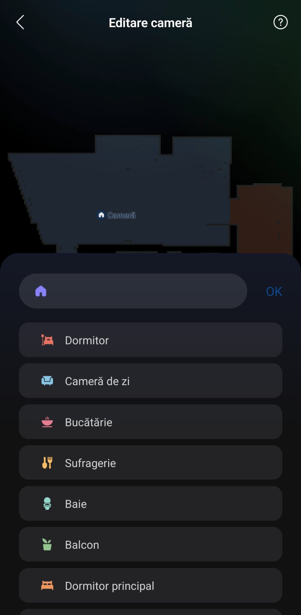 - Denumești camerele – poți atribui fiecărei camere un nume specific, „Dormitor”, „Bucătărie” sau „Living”. Astfel, robotul știe exact unde să intervină atunci când îi dai comenzi precum „Curăță bucătăria”.