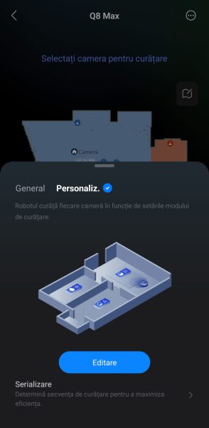 - Ordinea camerelor – Alegi camera cu care robotul să înceapă curățenia. De exemplu, poate începe cu bucătăria, urmată de hol și dormitor.