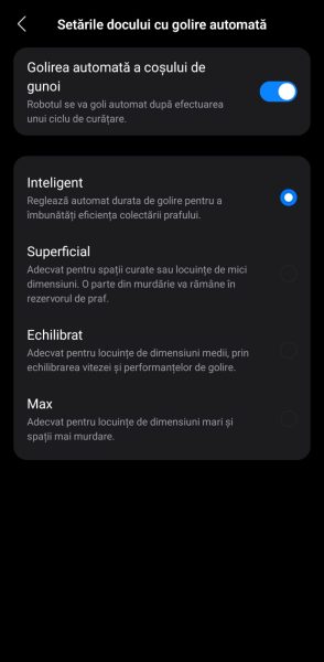 - De asemenea, există o funcție DND (Do Not Disturb), care dezactivează curățenia sau golirea automată în timpul orelor de odihnă.