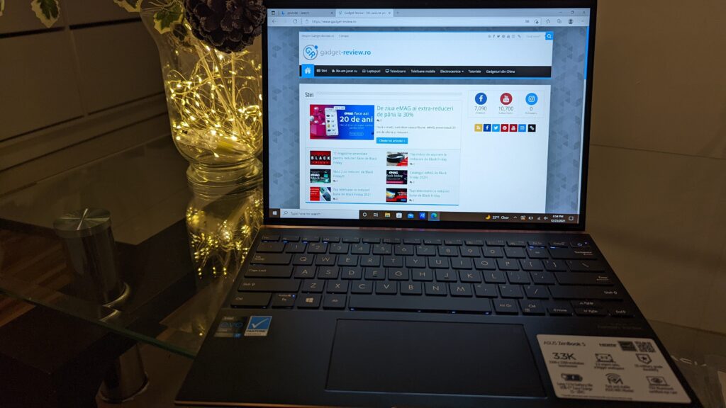 În ceea ce privește bateria, Zenbook S se laudă că duce până la 12 ore de autonomie, dar asta probabil să se întâmple într-un scenariu super optimist, căci în realitate, lucrurile stau puțin diferit în funcție de luminozitatea setată și tipul de activitate desfășurat. Pentru o utilizare normală, adică redactat articole, mail, ceva YouTube, rețele de socializare și un film pe Netflix, cu luminozitate 60%, am atins o autonomie undeva la 8 ore de utilizare, ceea ce nu e rău deloc. De încărcat, se încarcă rapid. 30 de minute la priză îi asigură cam 4 ore de utilizare.
