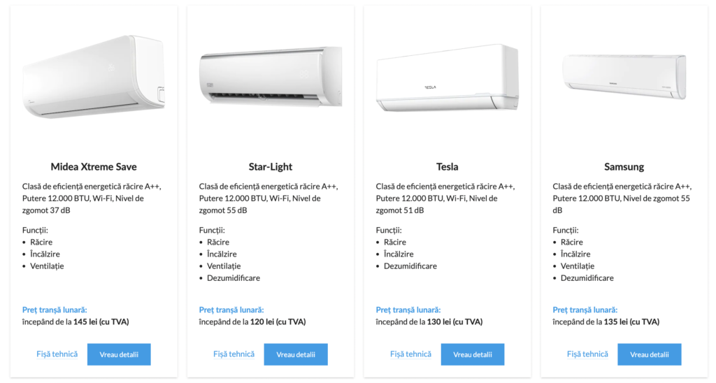Pe site-ul ENGIE găsiți mai multe detalii despre această ofertă, de la gama aparatelor de aer condiționat cu prețul lor și până la formularul pentru accesarea acestui pachet.