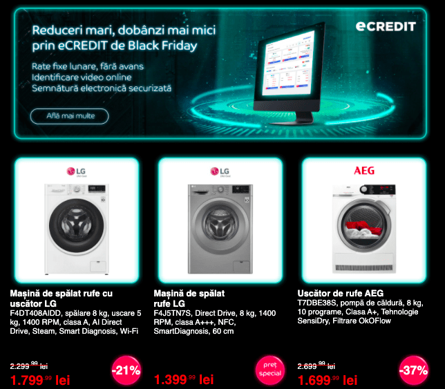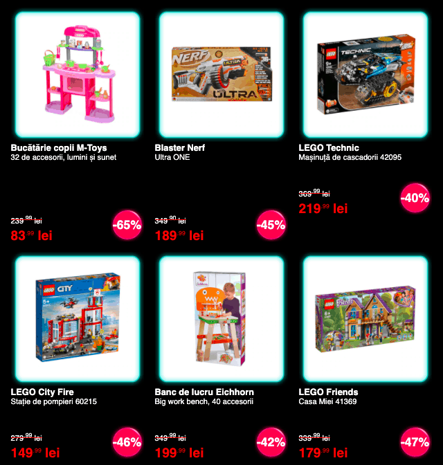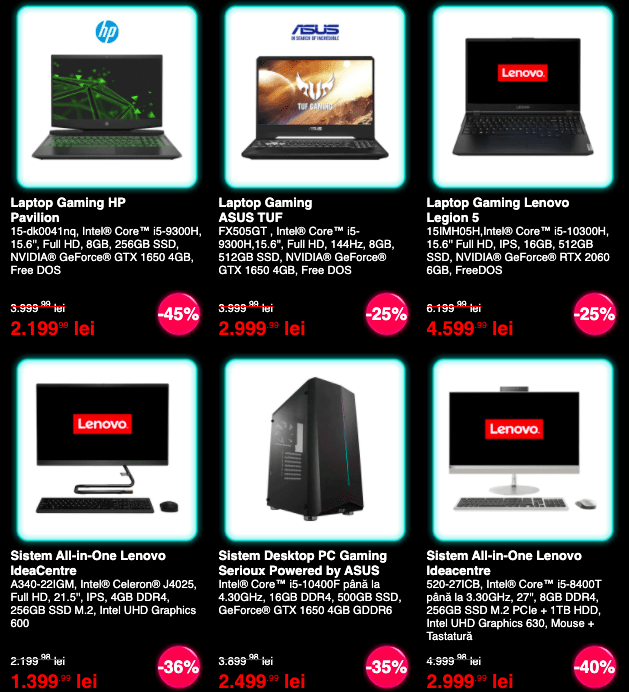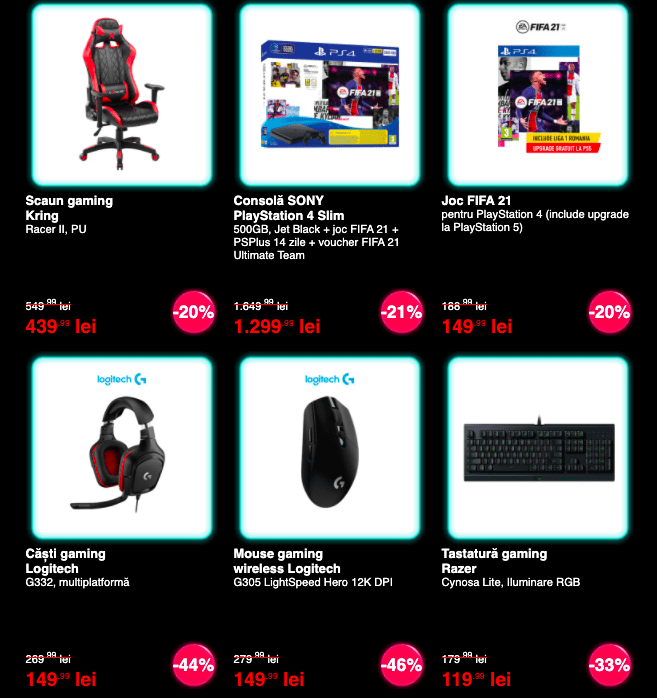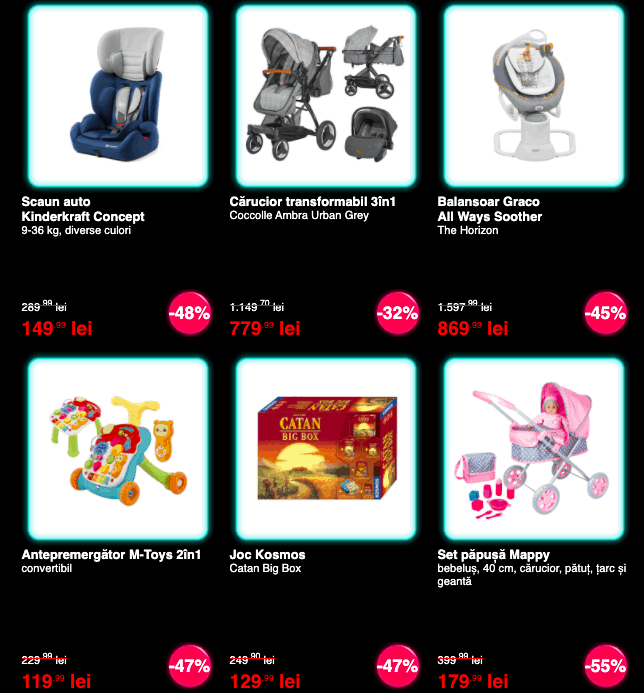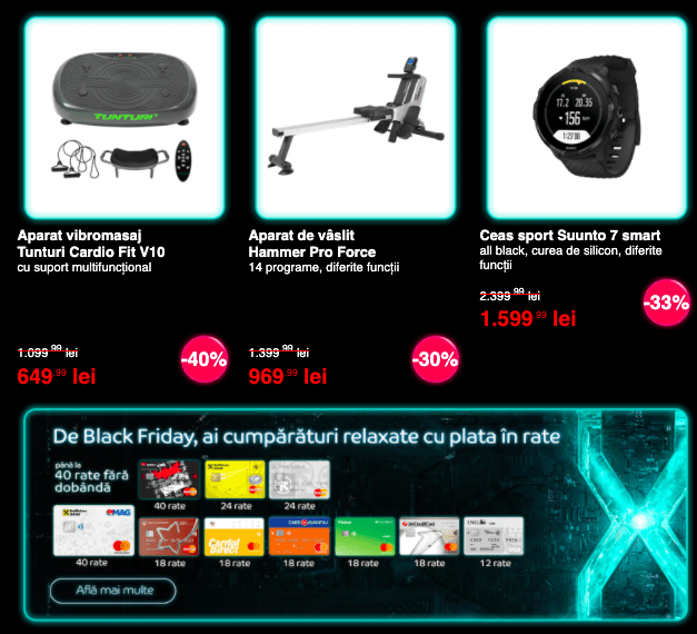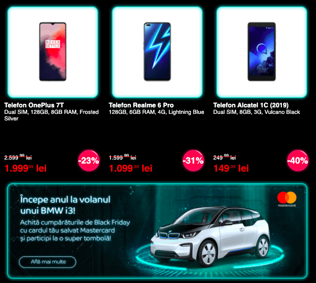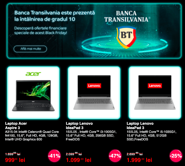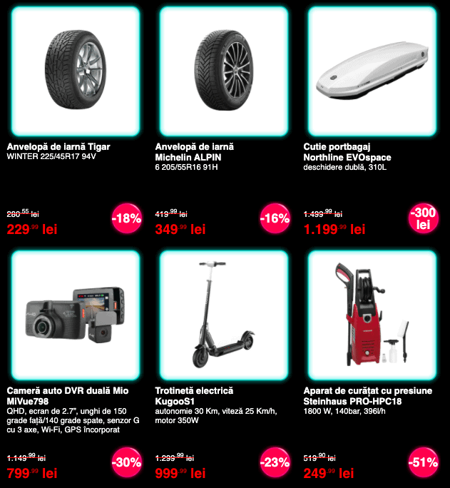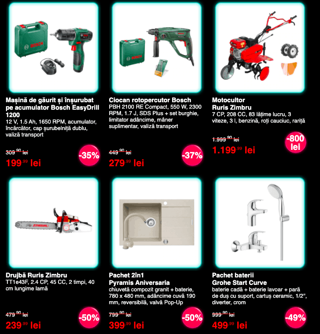 Iată ce produse vei găsi de dimineață pe eMAG, la reducere. Mai jos ai catalogul de promoții complet. Te sfătuiesc să fii pe fază, cele mai bune oferte se vor epuiza în primele secunde. În ultimii ani, eMAG a dat startul în jurul orei 7:00 dimineața. Iată cam cum arată oferta pe care eMAG a pregătit-o pentru ediția aniversară de 10 ani Black Friday 2020!