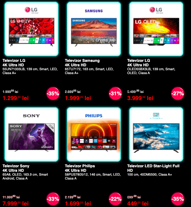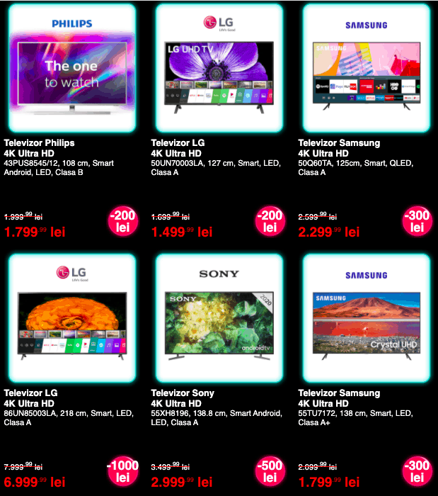–LG 55UN71003LB – Smart TV 4K, 139 cm – redus la 1299 lei, de la 1999 lei.