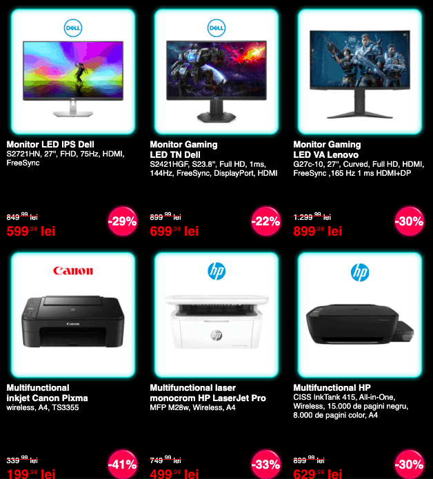 –Monitor Gaming LED PLS Samsung 23.5″ – redus la 299 lei, de la 499 lei.