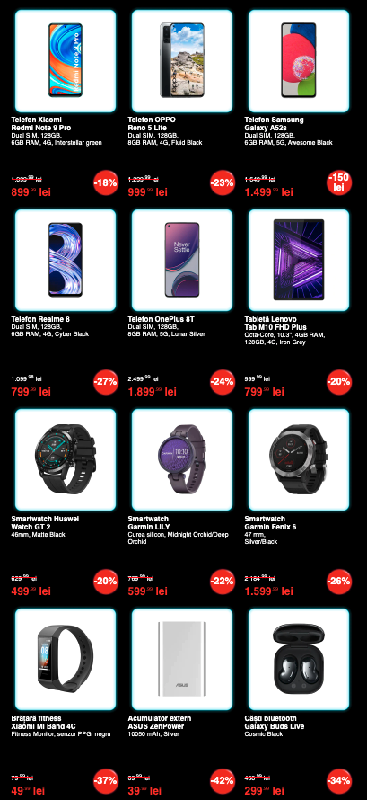 – OPPO Reno 5 Lite – 999 lei(1299 lei). Este un Dual SIM, cu 8 GB de RAM și 128 GB de memorie internă.