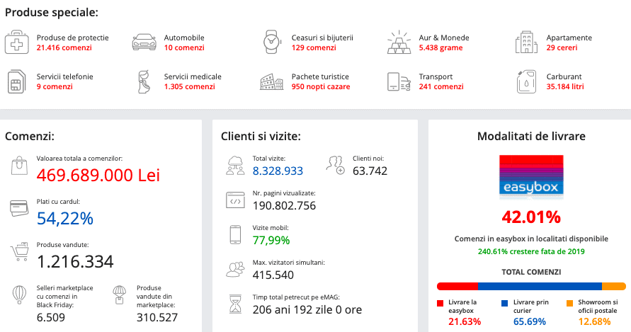 La orele 16:00 cam așa arătau statisticile eMAG cu privire la vânzările de Black Friday de anul acesta: