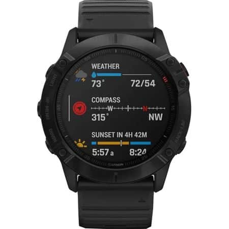 Se spune despre Garmin Fenix 6X Pro că îmbină în chip genial pretențiile estetice cu necesitățile atletice; într-adevăr, este alegerea ideală dacă ești sportiv și mare drumeț. Ceasul inteligent e dotat cu tehnologia Elevate™ de măsurare a pulsului la încheietură, include widget pentru performanță, care îți monitorizează progresul de la antrenamente și te ține aproape de comunitatea sportivă de pe Garmin Connect™: să îți depășești limitele nu a fost niciodată mai ușor. Dar smartwatch-ul impresionează și datorită integrării ansamblului de hărți recreaționale complet color din Europa, astfel ca tu să te simți peste tot ca la tine acasă. Nu în ultimul rând, dispozitivul are senzori de exterior, altimetru barometric, busolă și poate rezista până la 21 zile în modul de ceas inteligent.