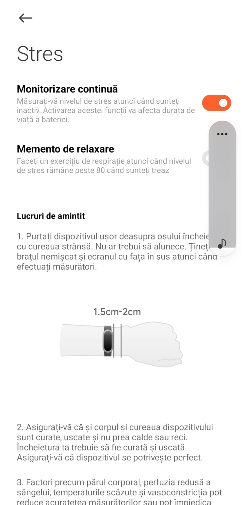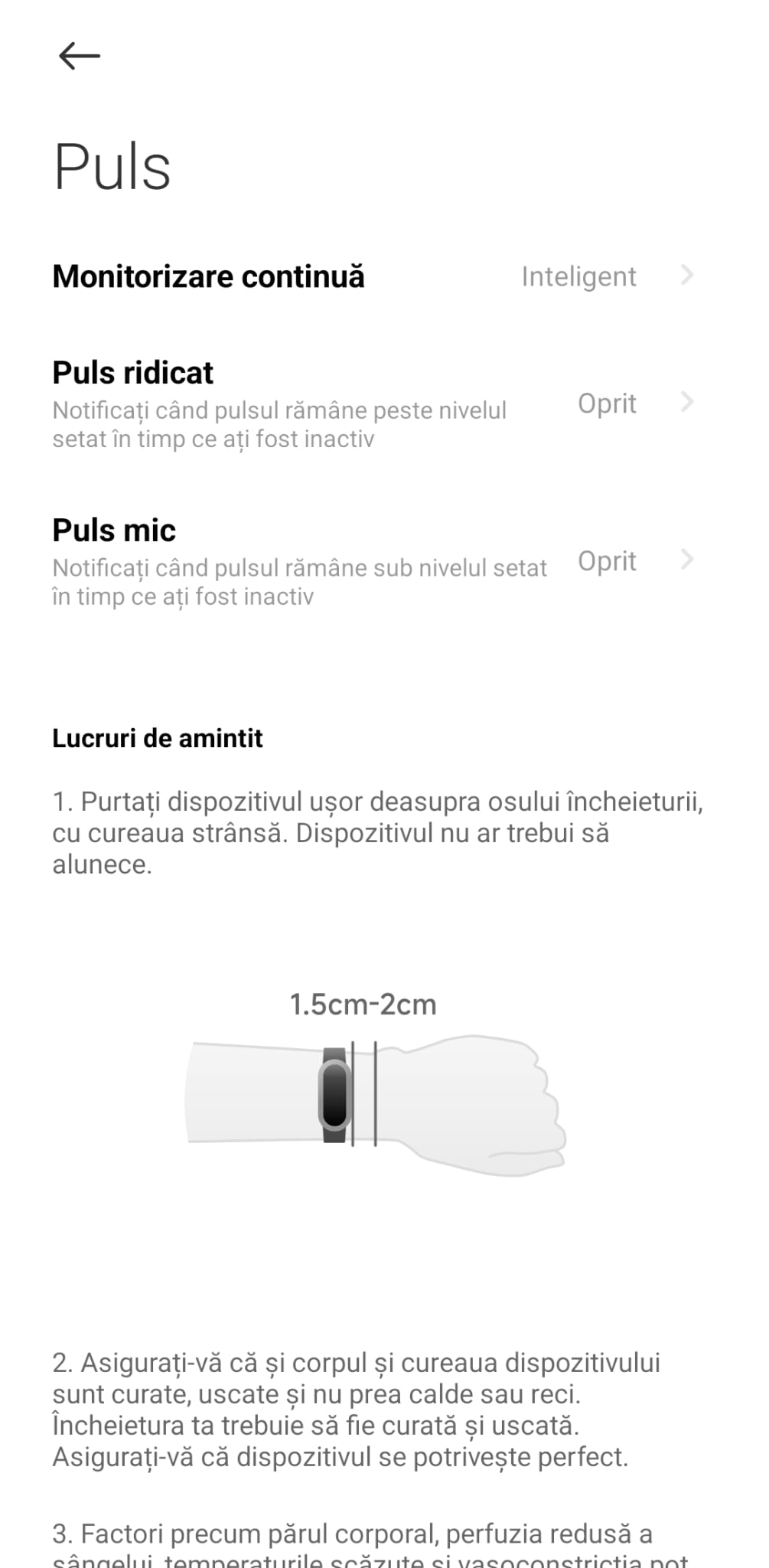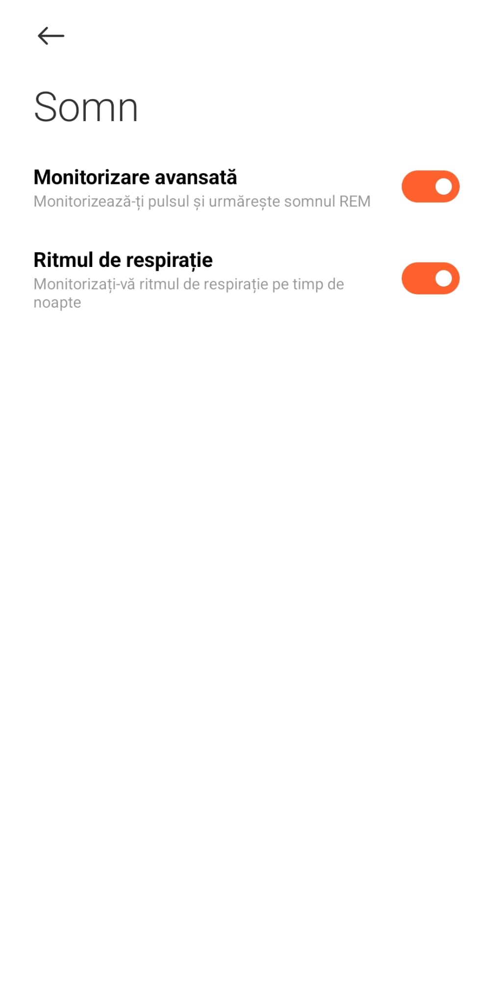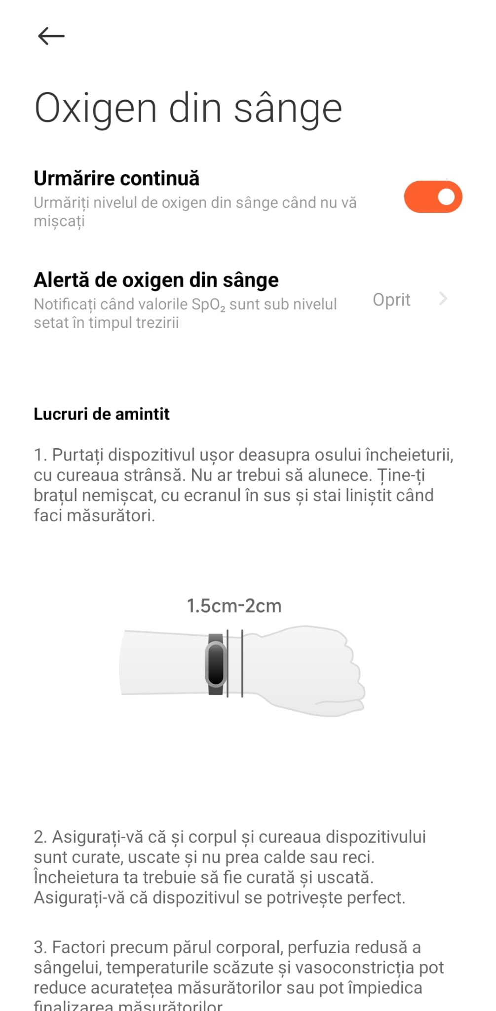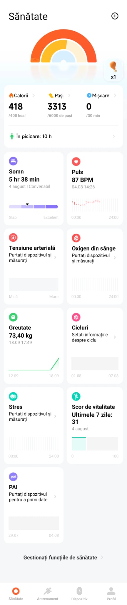 Pulsul este monitorizat 24/7, la fel și nivelul de oxigen din sânge (SpO2), stresul și calitatea somnului. Toate datele sunt ușor de vizualizat atât în meniul ceaasului, cât și în aplicația Mi Fitness, unde le vezi mult mai detaliat.