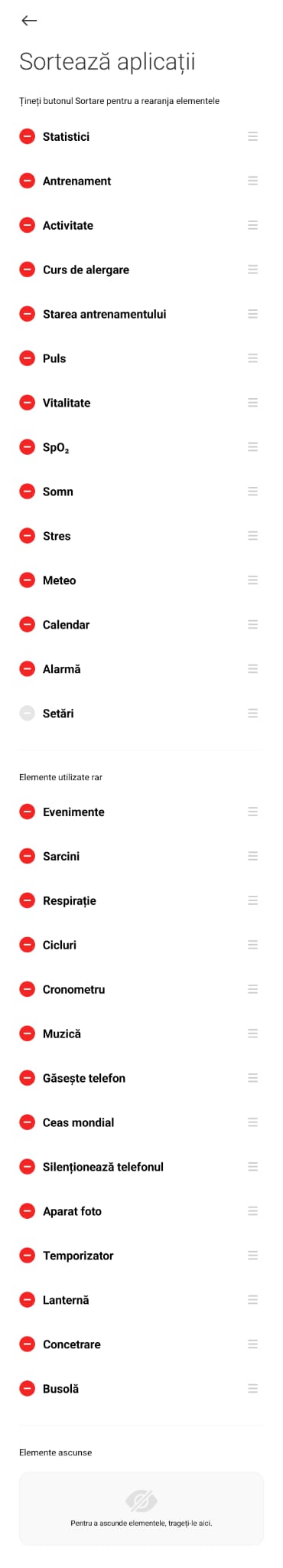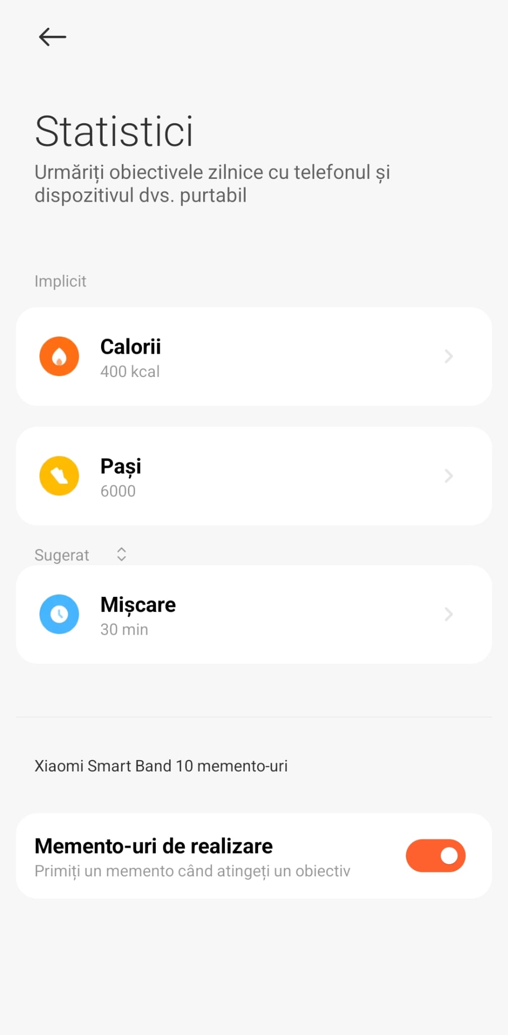 Poți alege din aplicația Mi Fitness ce vrei să apară aici și în ce ordine.