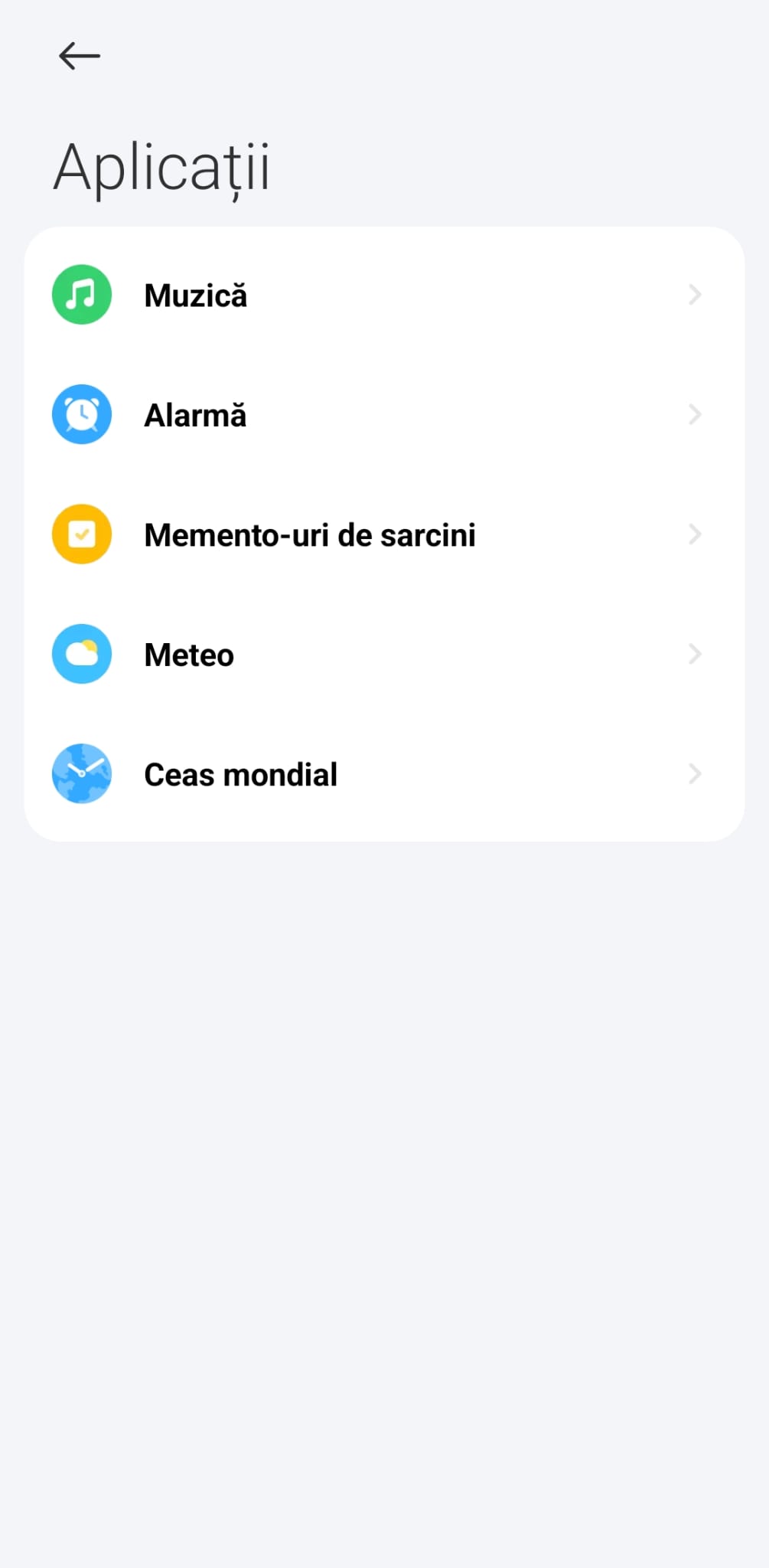 - un meniu cu alte opțiuni(evenimente, sarcini, respirație, cicluri, cronometru, muzică, gasește telefonul, ceas mondial, modul silențios, cameră, temporizator, lanternă, concentrare – în caz că vrei să îți setezi timpi pentru a lucra fără elemente care să își distragă atenția și busolă)