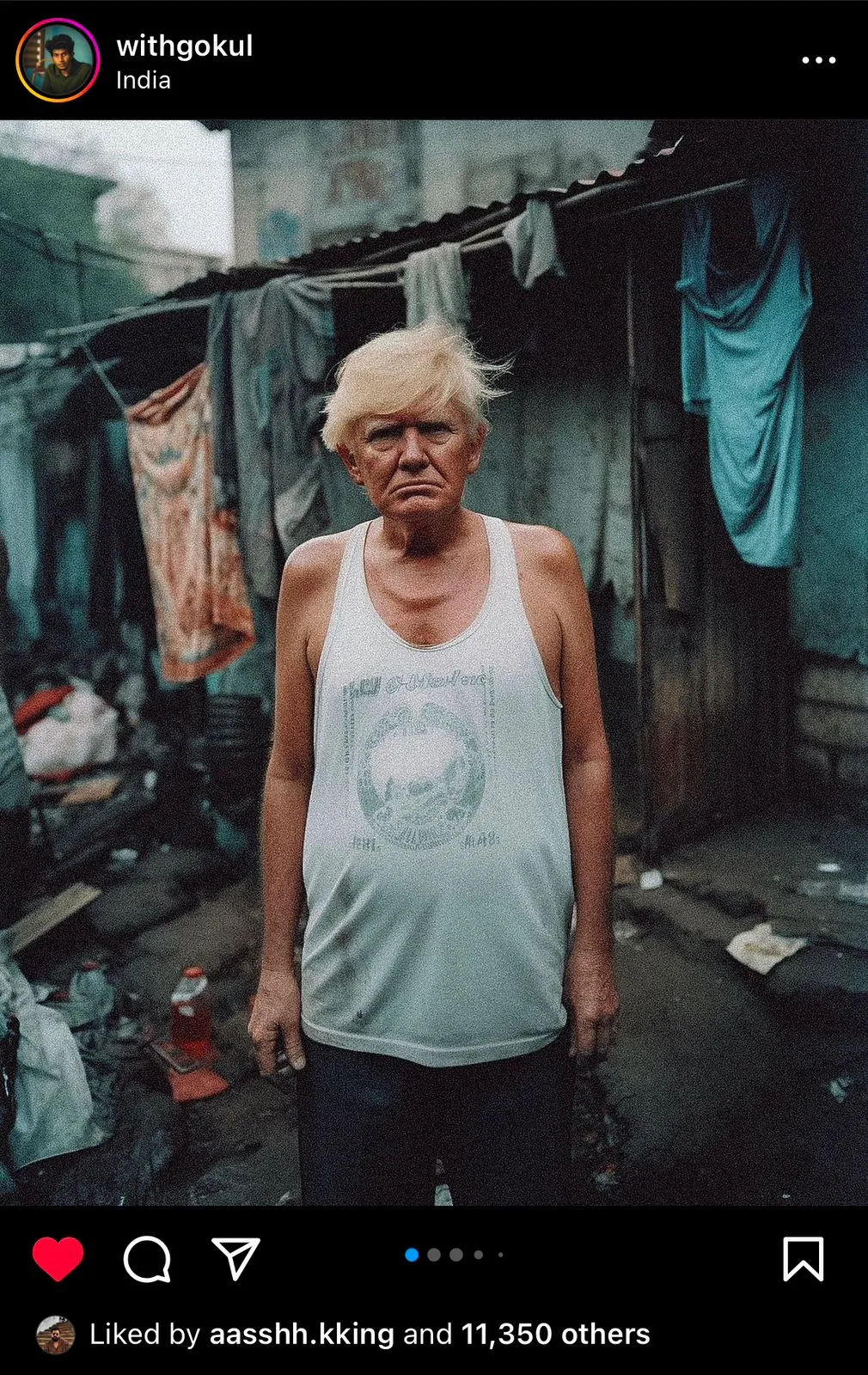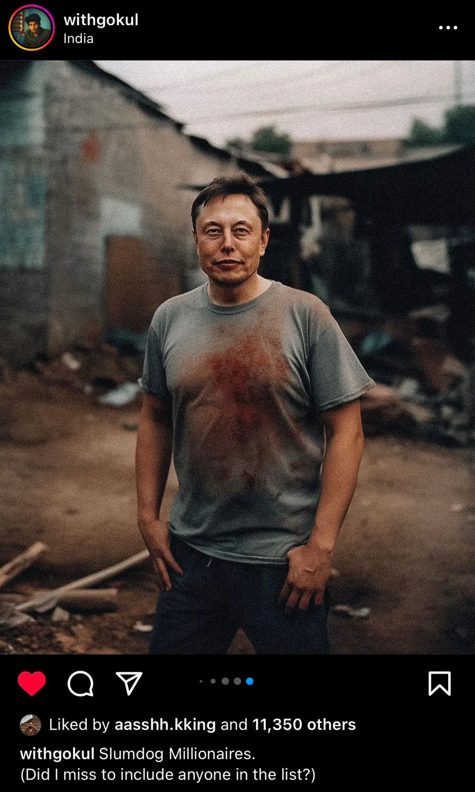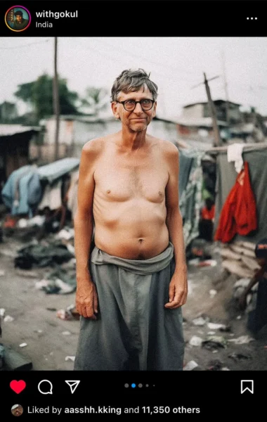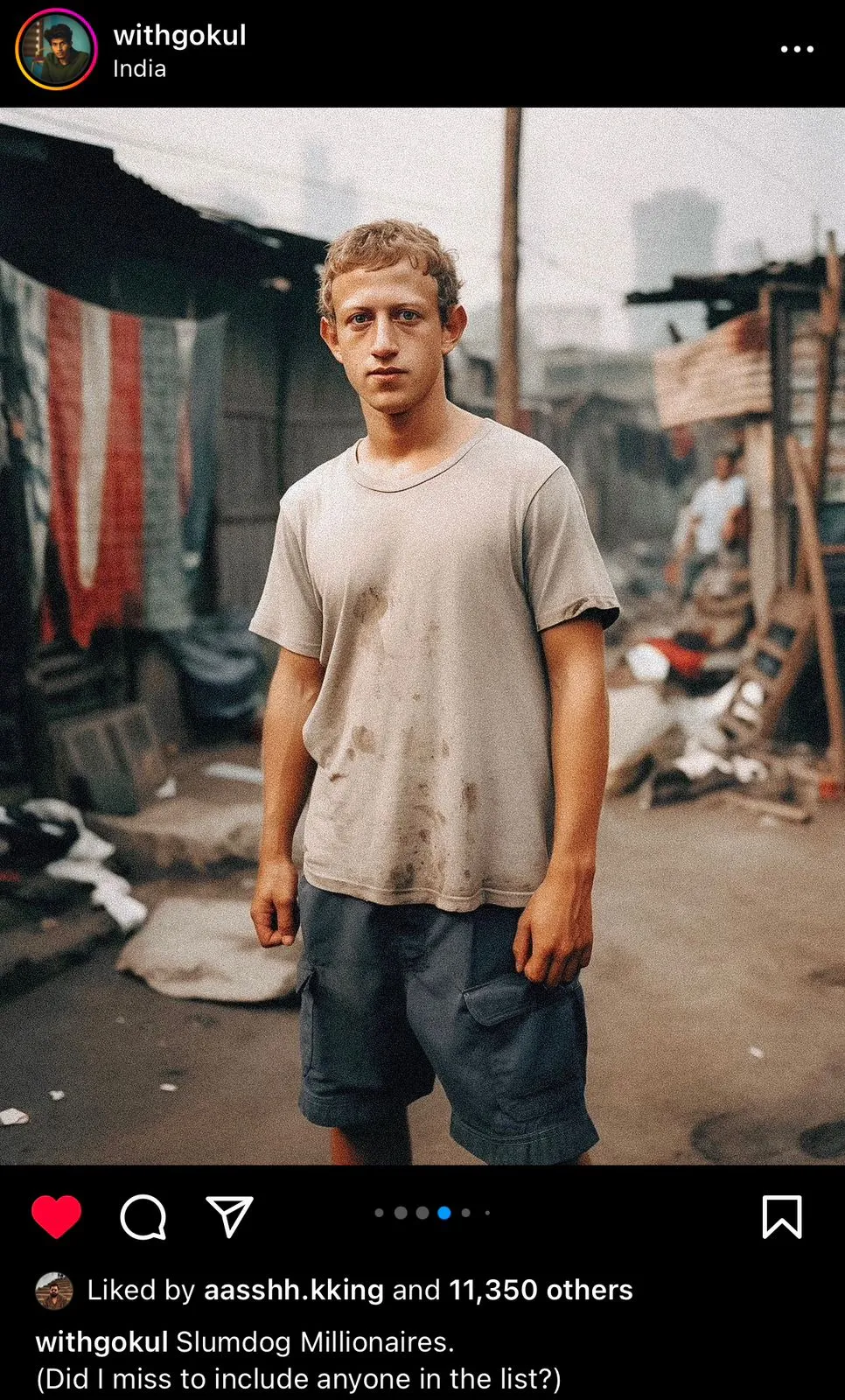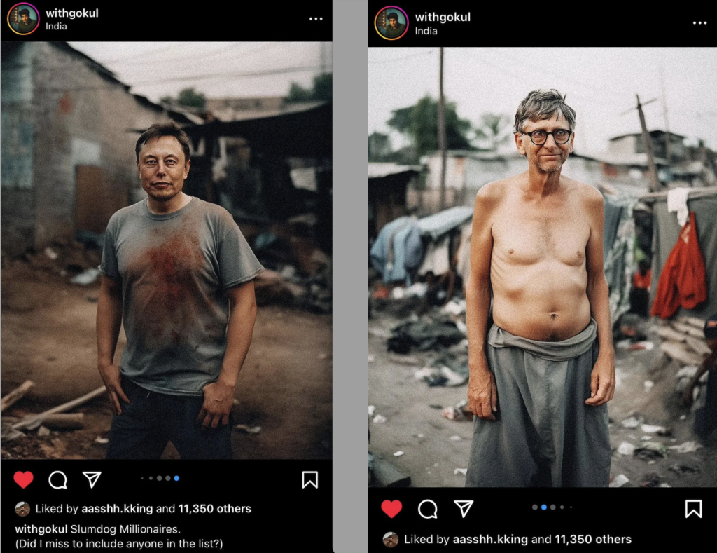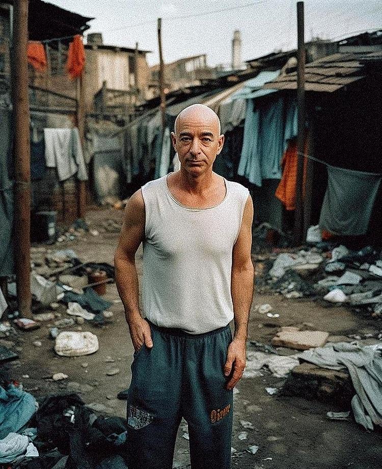 Gokul Pillai, este artistul care zilele acestea s-a folosit de inteligența artificială pentru a arăta cum ar fi unii dintre bogații lumii dacă în realitate ar fi săraci. Imaginile obținute cu ajutorul aplicației Midjourney au fost editate în Photoshop.