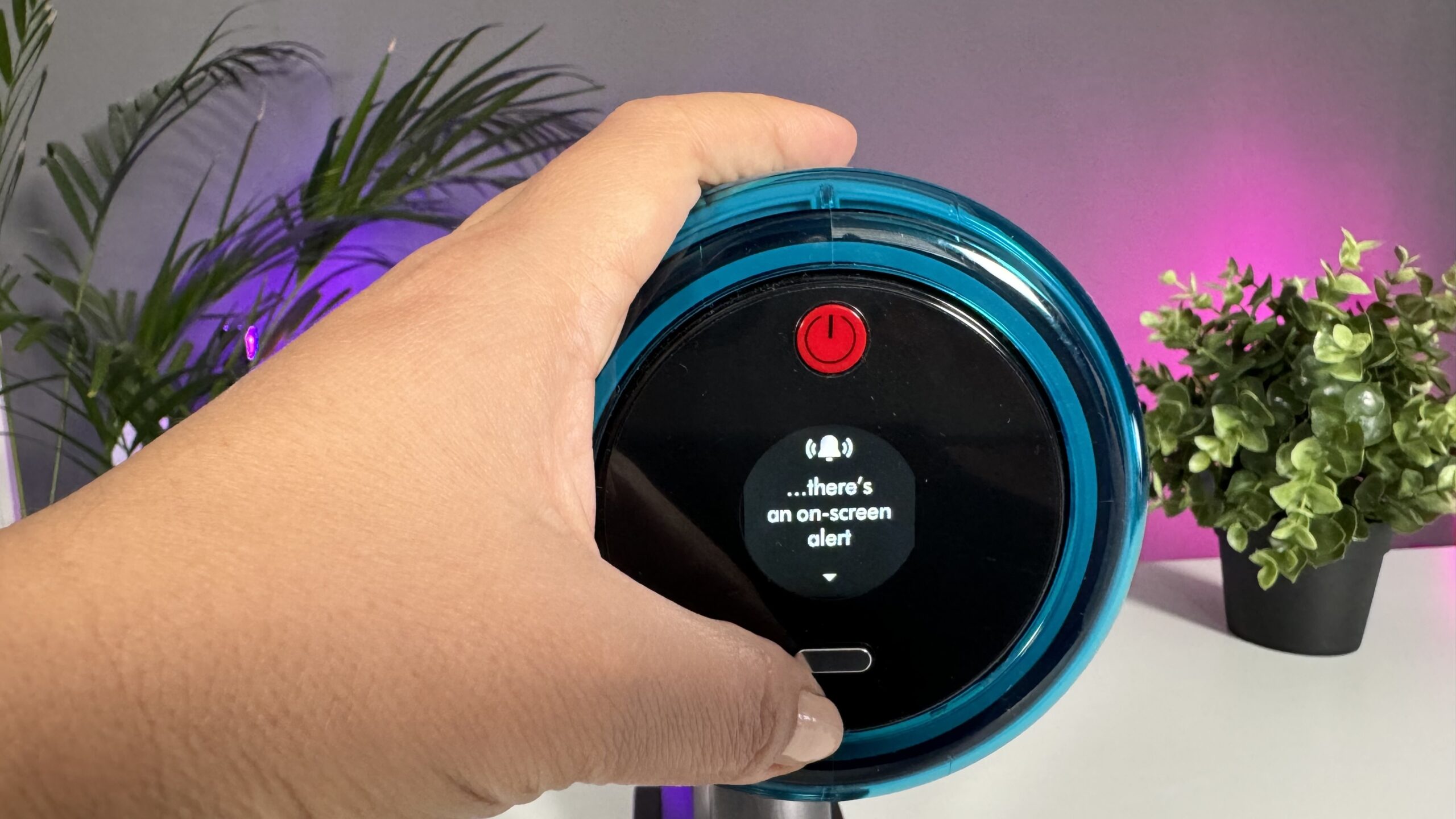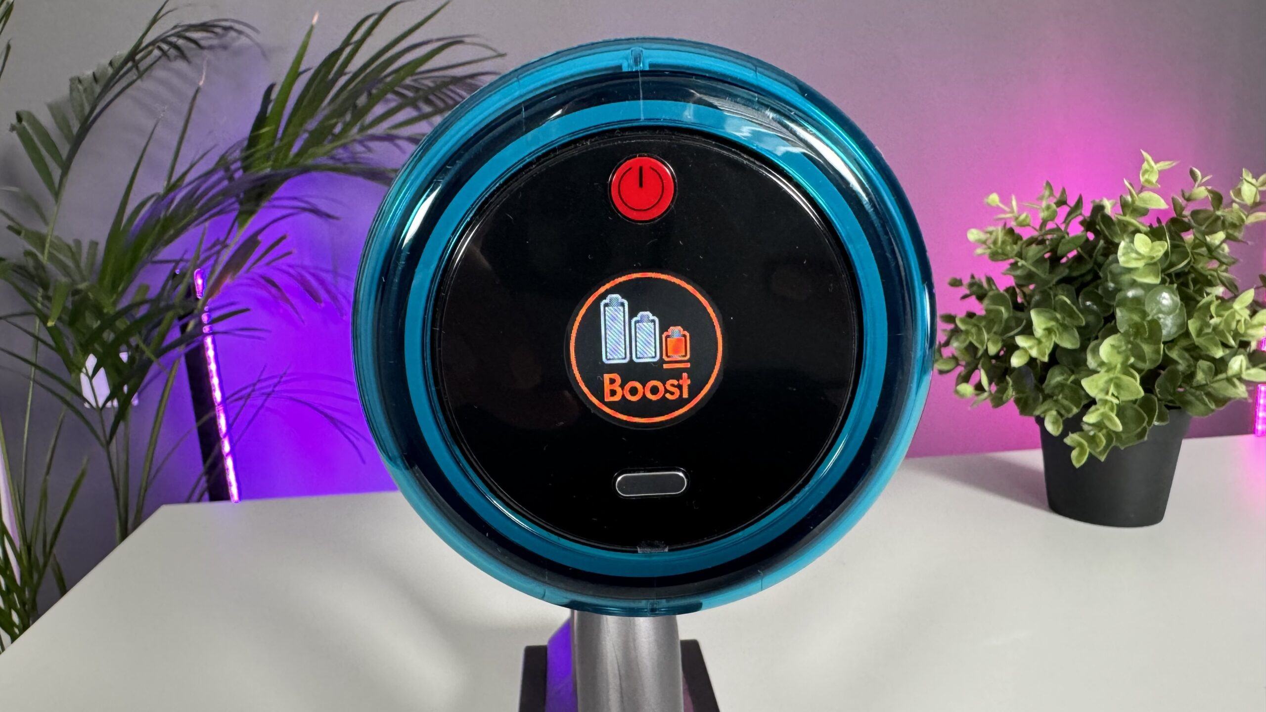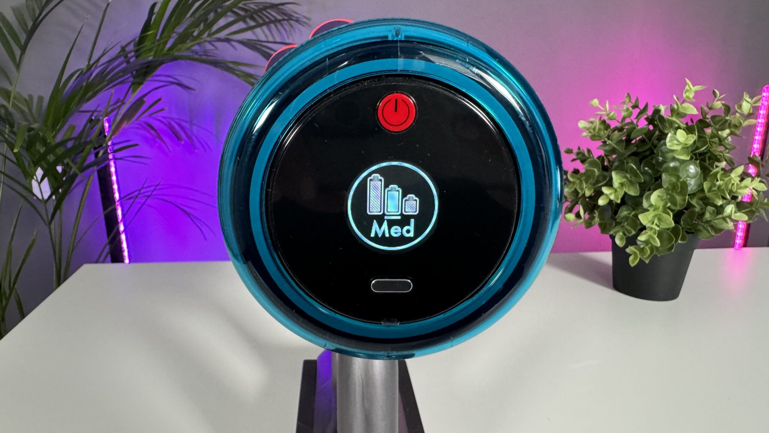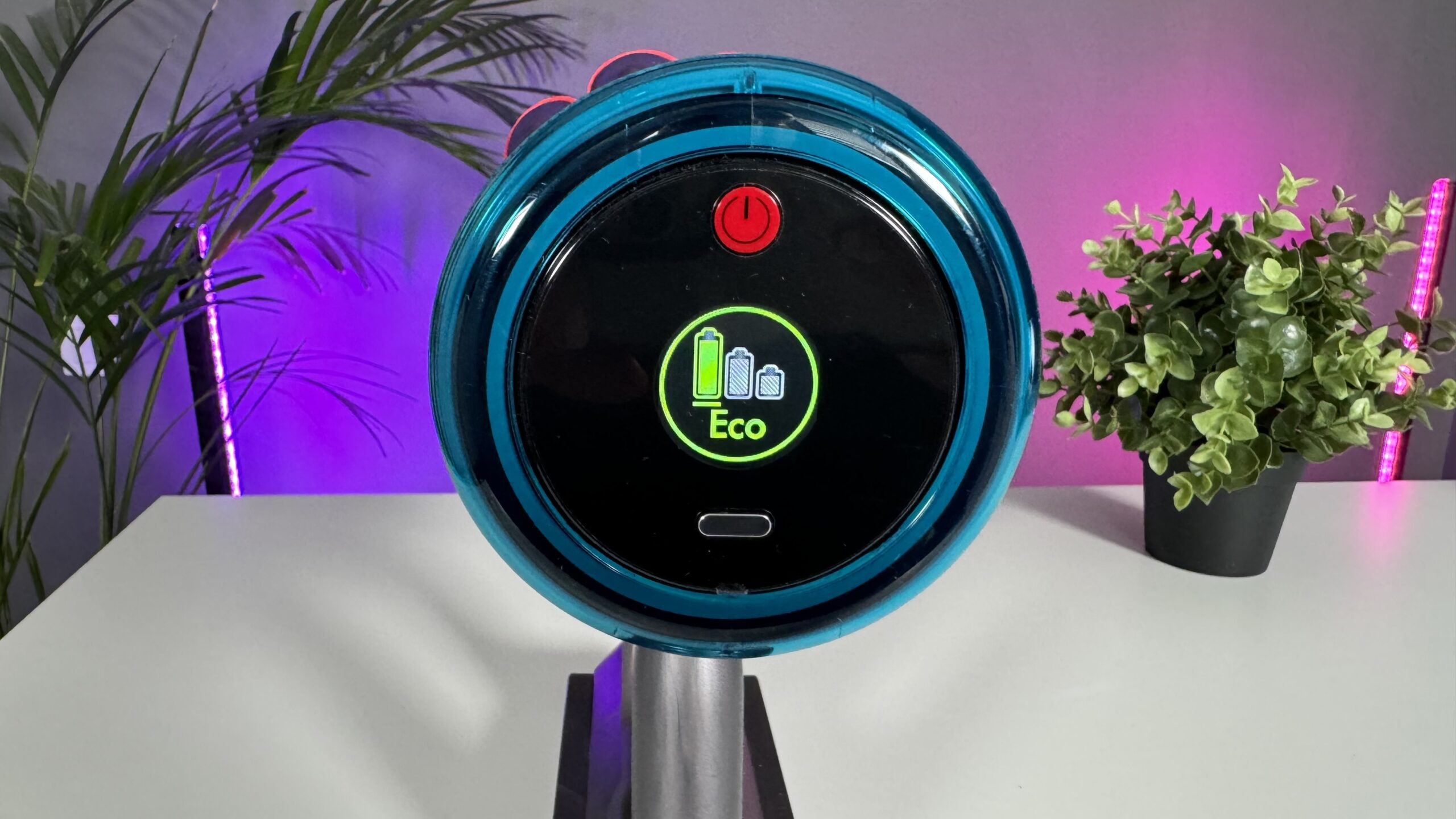 Îmi place că de data aceasta butonul de pornire/oprire nu mai trebuie apăsat în permanență atunci când folosești aspiratorul. Acum avem deasupra display-ului LCD un buton Power roșu, o idee mult mai bună față de ce modelul anterior, unde trebuia să ții apăsat în permanență butonul Power când aspirai.