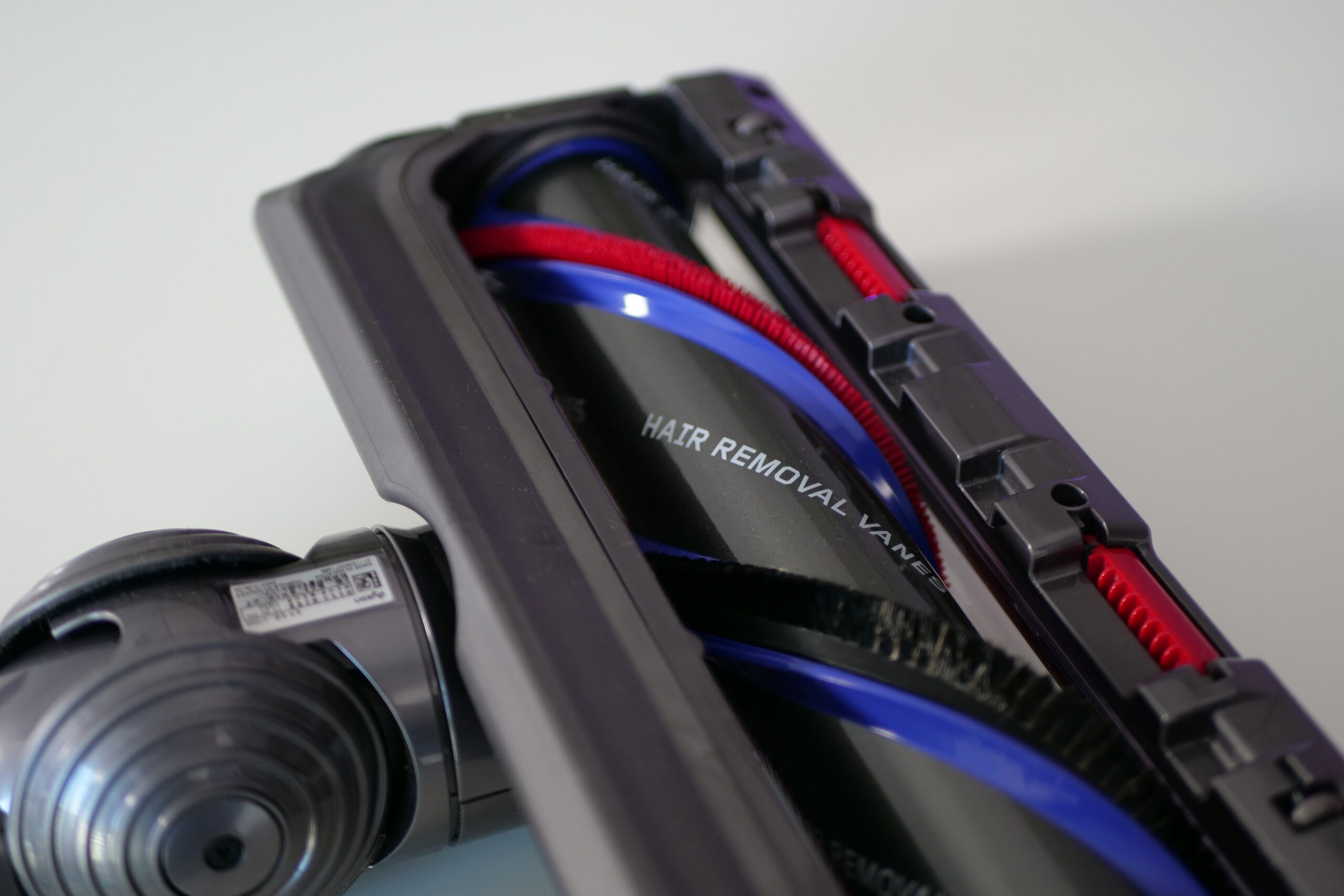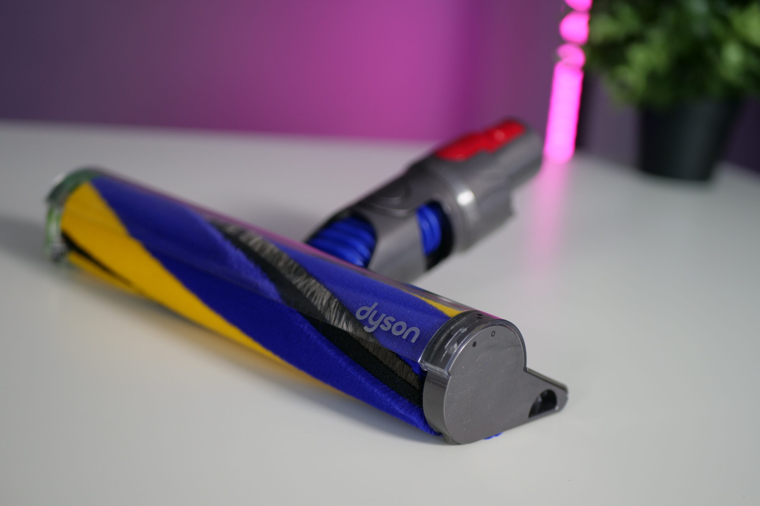 – Cel principal denumit Digital Motorbar, care este motorizat. Este ideal pentru a îndepărta reziduurile de mari dimensiuni atât de pe pardoseală, cât și de pe covoare. Îmi place că știe să își regleze în mod automat puterea în funcție de tipul de suprafață aspirat. Nu trebuie să fac nimic pentru a schimba puterea de aspirare atunci când trec de pe parchet pe covor și invers. Știe că pentru aspirarea țesăturilor este nevoie de o putere mai mare, astfel că și-o ajustează singur. În plus vine echipat și cu un accesoriu de tăiere a firelor de păr, pentru a preveni încurcarea acestora pe perie. Și da, este foarte eficient. Eu am părul lung și nu am sesizat să găsesc fire încurcare pe perie.