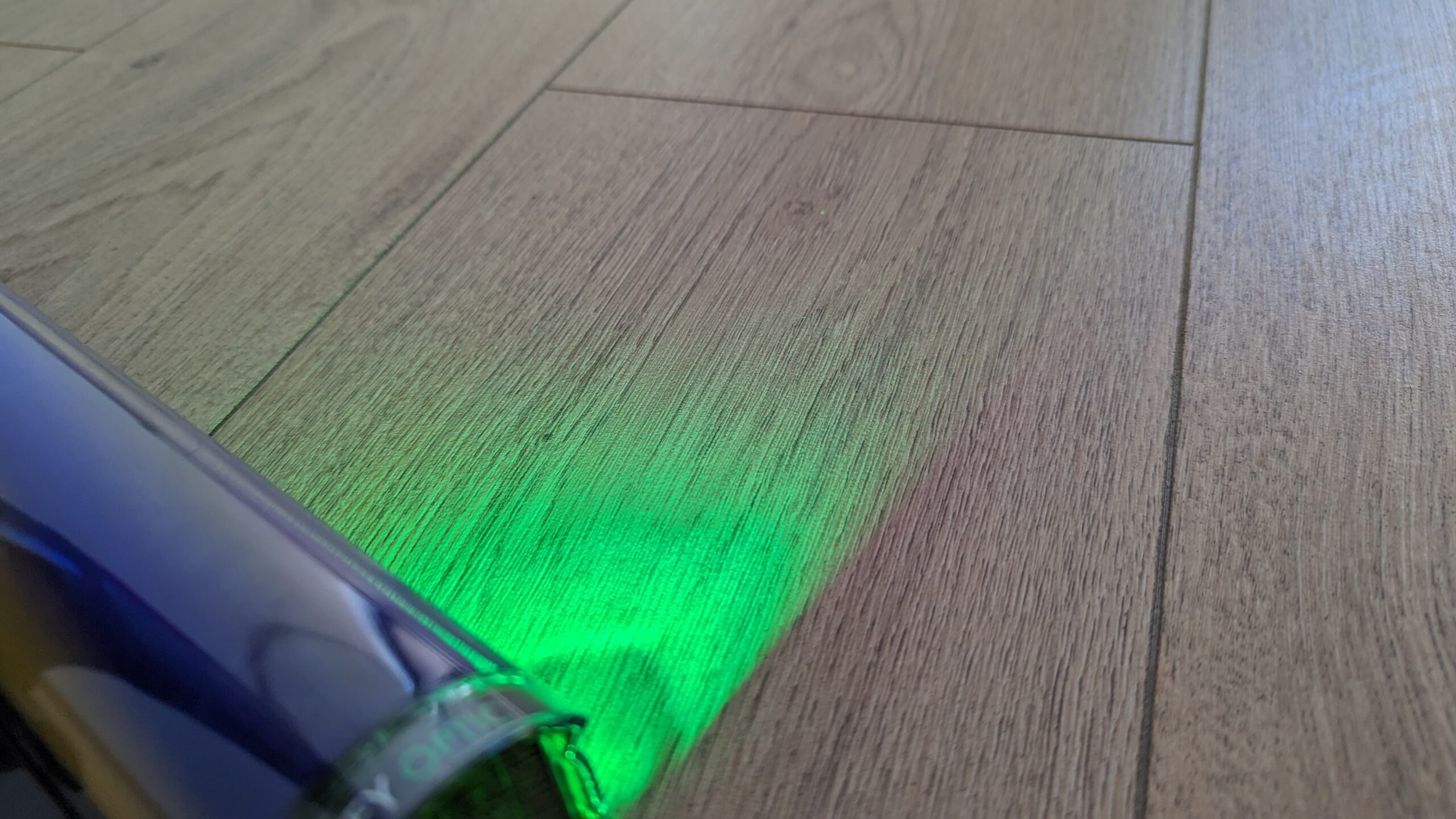 – Cel de-al doilea capăt de aspirare, denumit Fluffy Optic, este preferatul meu. Dispune de o perie moale, cu ajutorul căreia vei curăța gresia și parchetul în profunzime. Ceea ce face ca acest capăt să fie cu adevărat special este dioda laser de care dispune. Aceasta proiectează un fascicul de lumină verde în fața capătului de curățare, ce ajunge până la 300 mm3, evidențiind astfel nu doar praful și murdăria, ci și particulele de praf microscopice, pe care în mod normal nu le-ai vedea cu ochiul liber. Și nu, nu ai de ce să îți faci griji, dioda laser nu este periculoasă pentru oameni sau animale.