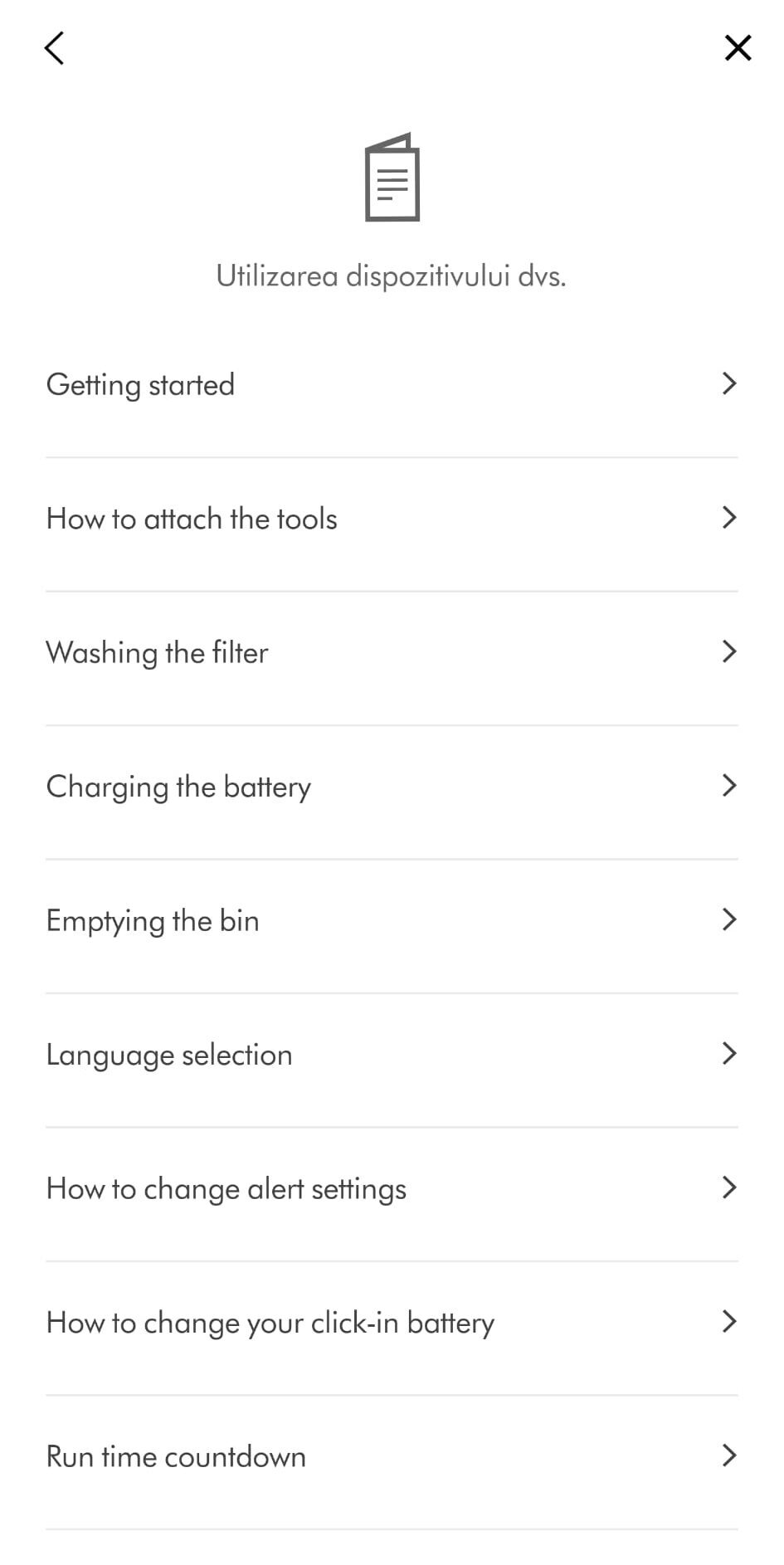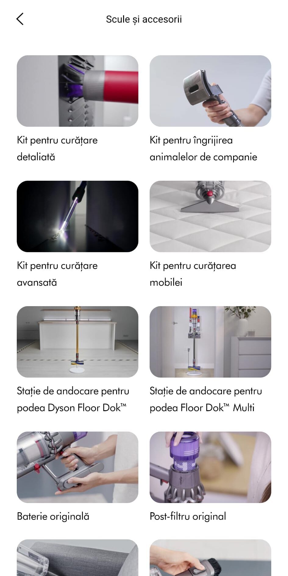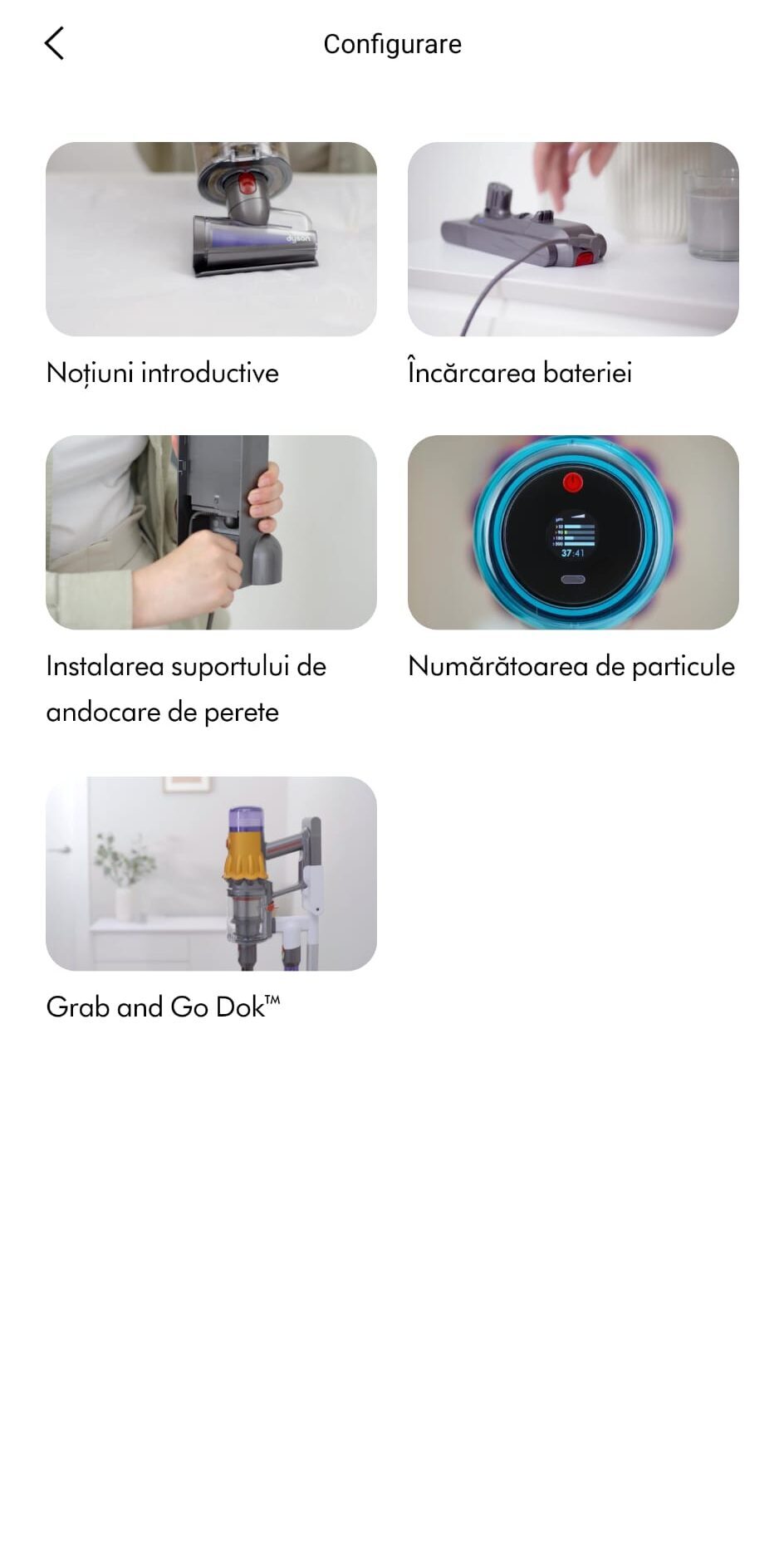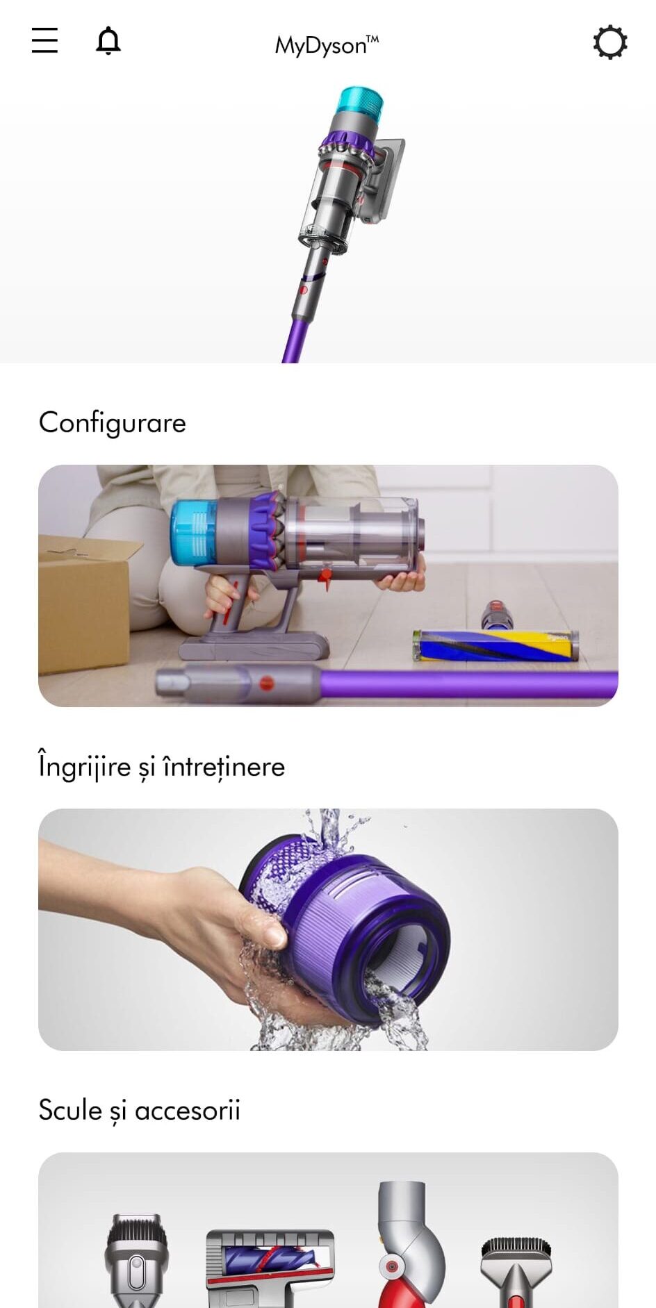 Aplicația My Dyson o poți descărca atât din Google Play, cât și din App Store. În primul rând te ajută să îți activezi garanția, în al doilea rând găsești aici materiale video explicite legate de mentenanța aspiratorului, modul de folosire, dar și despre accesoriile sale. E ok, dar mi-aș fi dorit să găsesc ceva mai multe informații legat de aspiratorul propriu-zis: câte ore de aspirare are, mp aspirați etc.