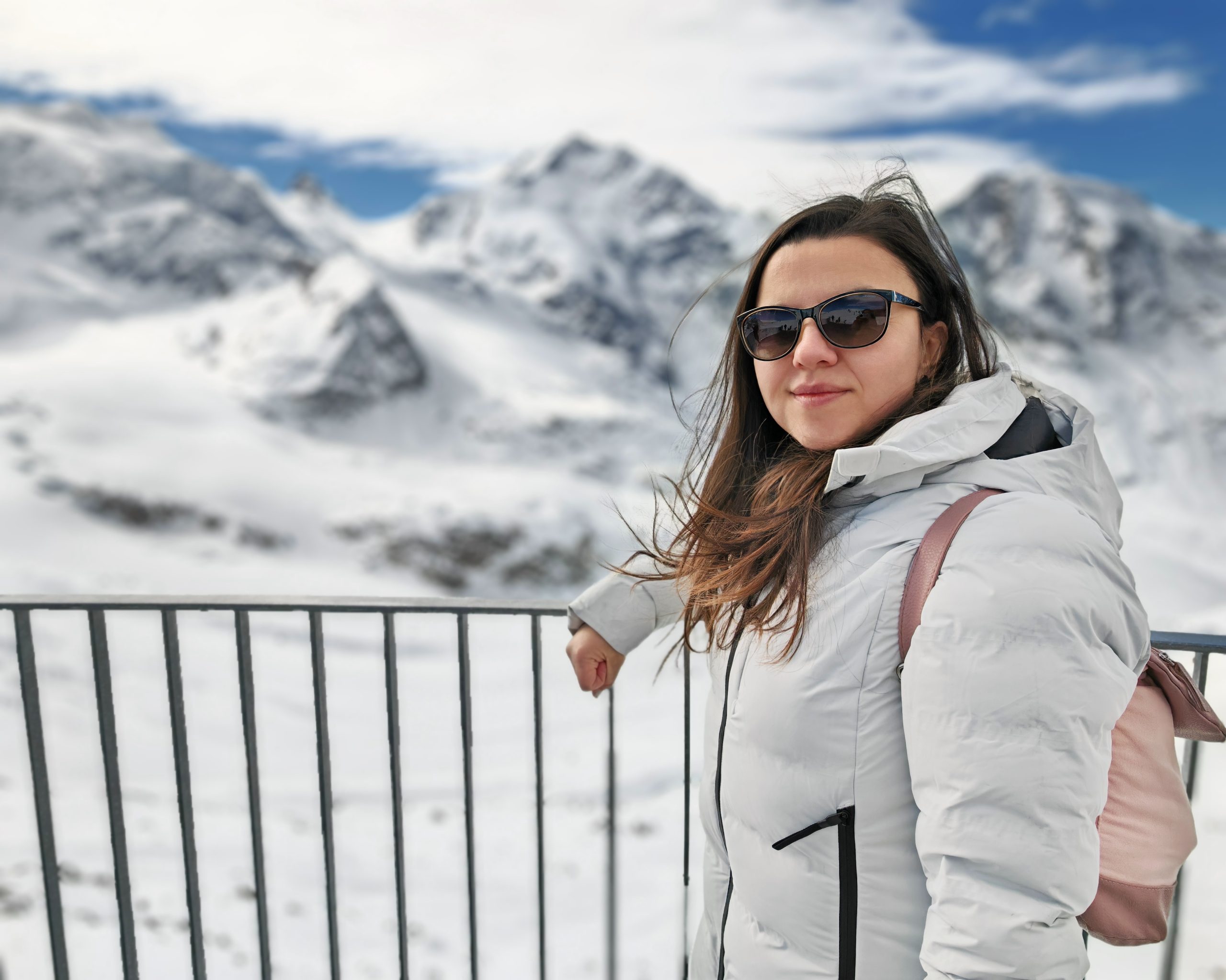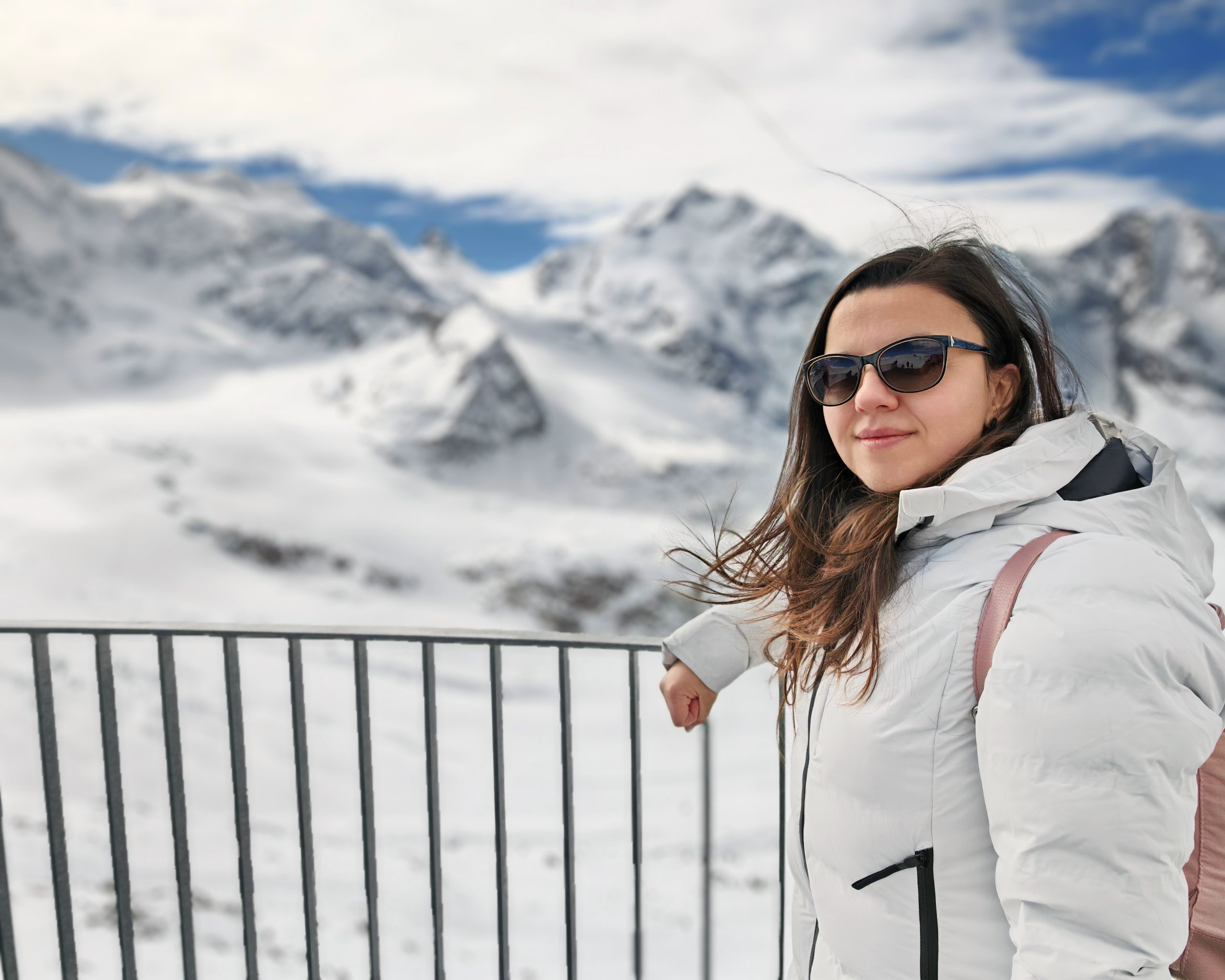 Teleobiectivul de 200MP a permis realizarea de fotografii detaliate de la 3000 m altitudine, pe Diavoletza, locul unde frumusețea Alpilor îți taie răsuflarea și unde se schiază de la vârsta frageda de 2 ani și până la cele mai înaintate.