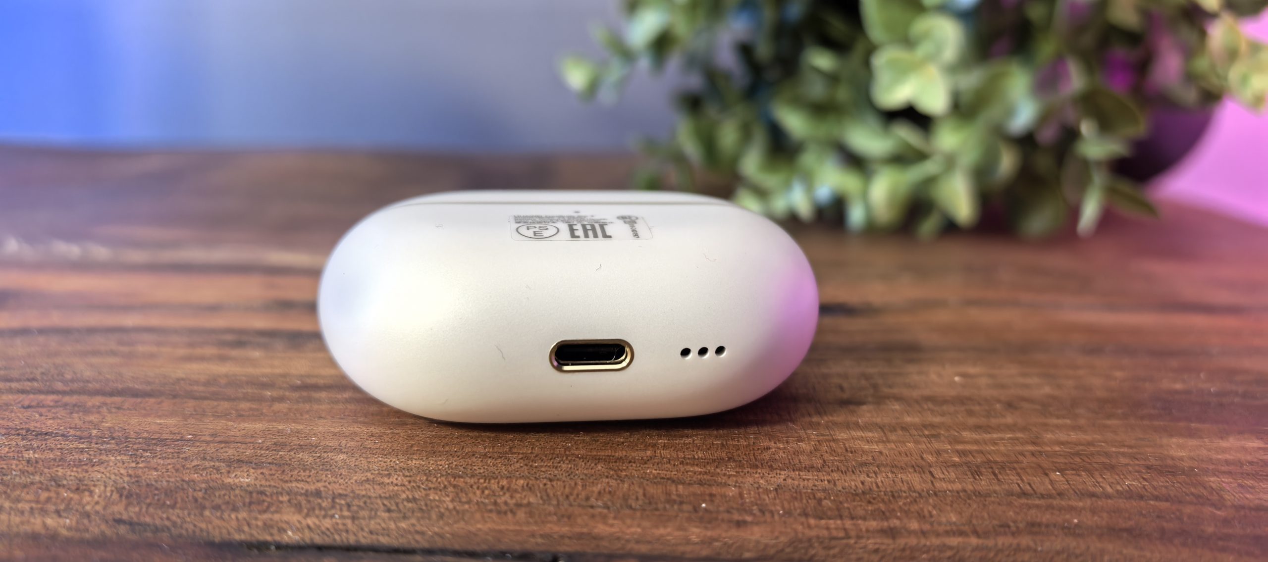 Carcasa de încărcare este compactă și plăcută la atingere, cu un finisaj mat care previne apariția amprentelor. Datorită designului bine gândit, căștile se potrivesc perfect în urechi, reducând riscul de a cădea chiar și în timpul activităților fizice.