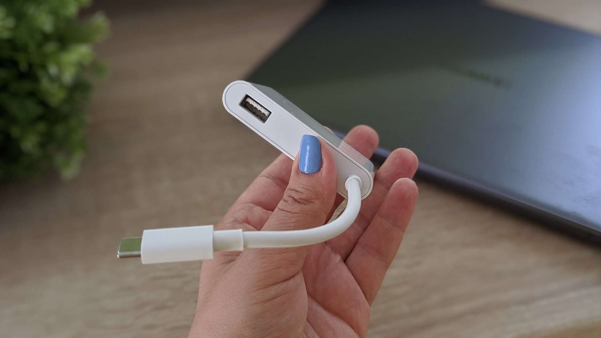 MateBook 13 vine într-o cutie albă, la fel ca și telefoanele de top de anul acesta. Dacă în mod normal în cutia unui laptop găsim device-ul, însoțit de încărcător și cablul de încărcare, ei bine în cazul de față am fost plăcut surprinsă să constat că Huawei adaugă în pachet și un adaptor multiport, ceea ce nu-mi amintesc să fi văzut pe la concurență. Ce n-am înțeles aici, este prezența portului VGA, un port cam învechit după părerea mea. Mi-ar fi plăcut ca în locul acestuia să fi găsit un port de rețea mai degrabă, dar având în vedere că accesoriul este un bonus, trecem cu vederea acest neajuns.