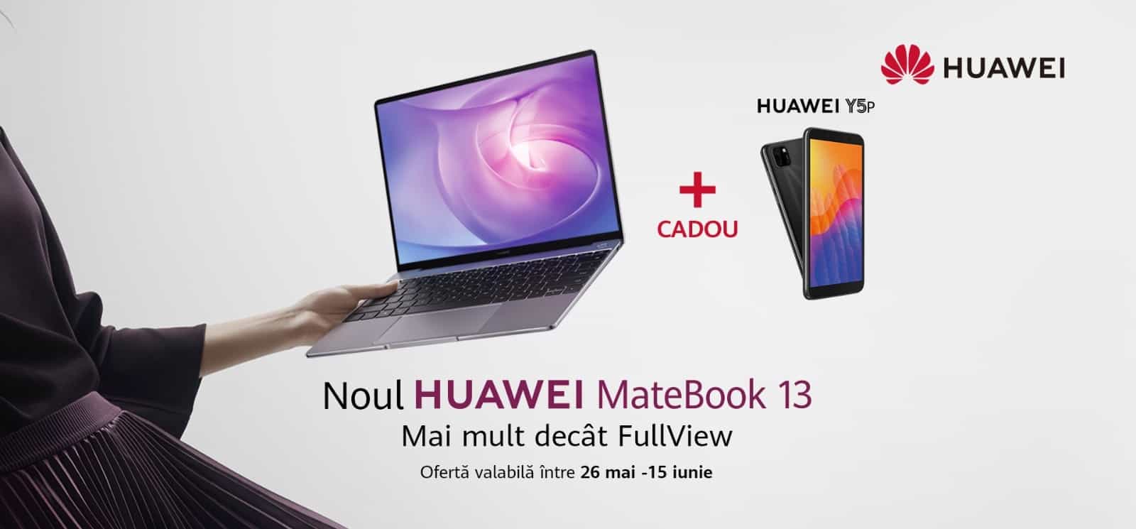 – la achiziționarea unui MateBook 13, cu procesor Intel i5 sau Intel i7, până în data de 15 iunie, primești cadou un telefon Huawei Y6p.