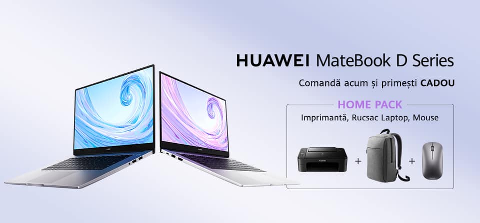 Huawei vine în întâmpinarea nevoilor de a lucra de la distanță și continuă seria ofertelor promoționale în această perioadă, cu laptop-urile Huawei MateBook D14 și D15, disponibile în magazinele partenere până pe data de 17 aprilie. Mai exact la achiziționarea oricărui laptop, primești cadou o imprimantă + un rucsac de laptop + un mouse.