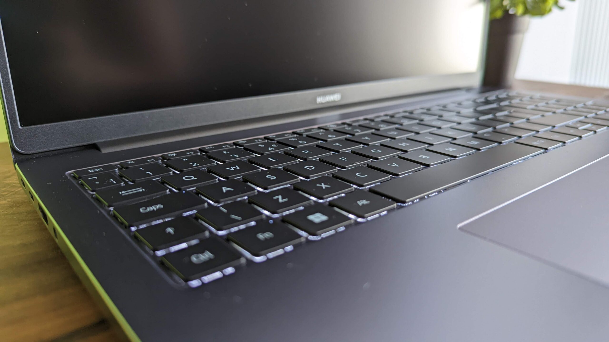 Ecranul se întinde până aproape de marginile laptopului. Margini subțirele, așa cum am văzut încă de la modelul anterior. Diferența este că de data aceasta și camera se regăsește pe latura superioară a ecranului. Nu mai avem camera integrată în tastatură, așa cum am văzut la Matebook D15. Deși ideea era ingenioasă, probabil unghiul din care era surprins utilizatorul a determinat producătorul să regândească poziția ei.