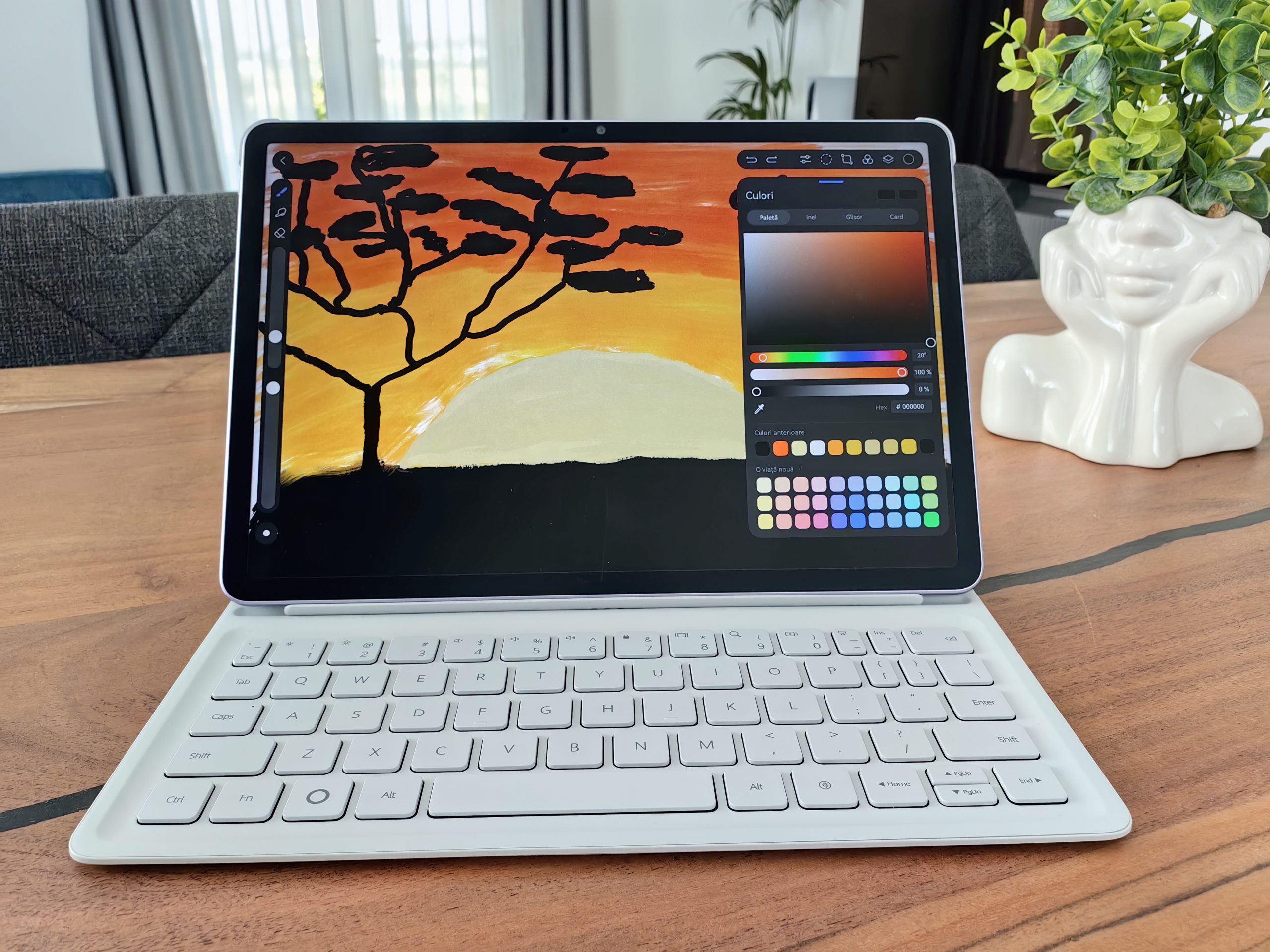 Să începem cu unboxing-ul! Și aici trebuie să știi că primești un bundle de fapt, pentru că tableta vine însoțită de o a doua cutie, în care vei găsi tastatura Smart Magnetic Keyboard, care se atașează magnetic și transformă tableta într-un adevărat laptop portabil. În cutia tabletei avem evident tableta, cu ecranul său PaperMatte care promite o experiență vizuală deosebită. Sub tabletă găsim o lavetă din microfibră pentru a păstra ecranul curat și fără amprente și un cablu USB-A la USB-C. Eu am aici și M-Pencil-ul pe care apropo îl primiți gratuit, la achiziția tabletei până la finalul lunii septembrie.