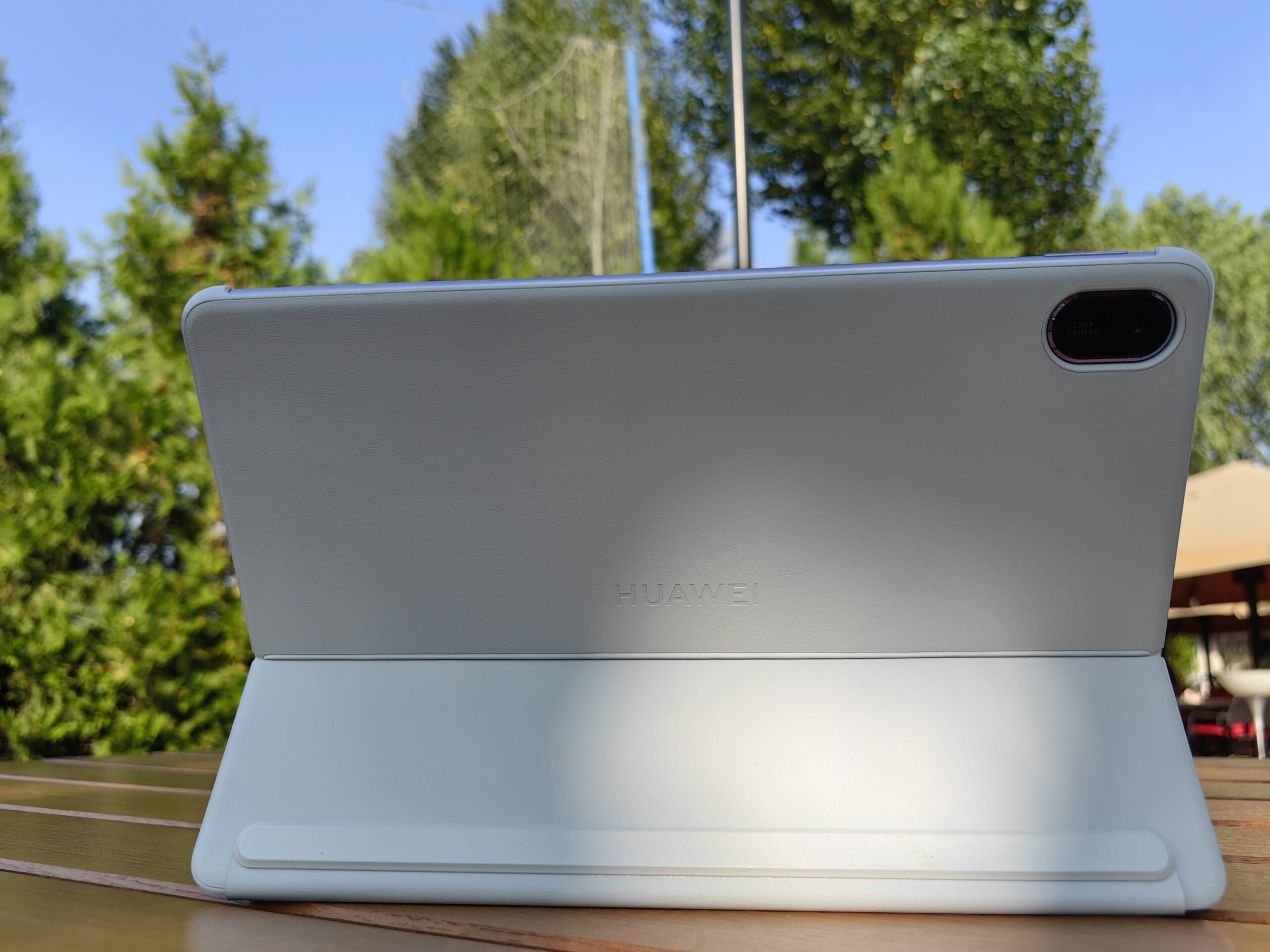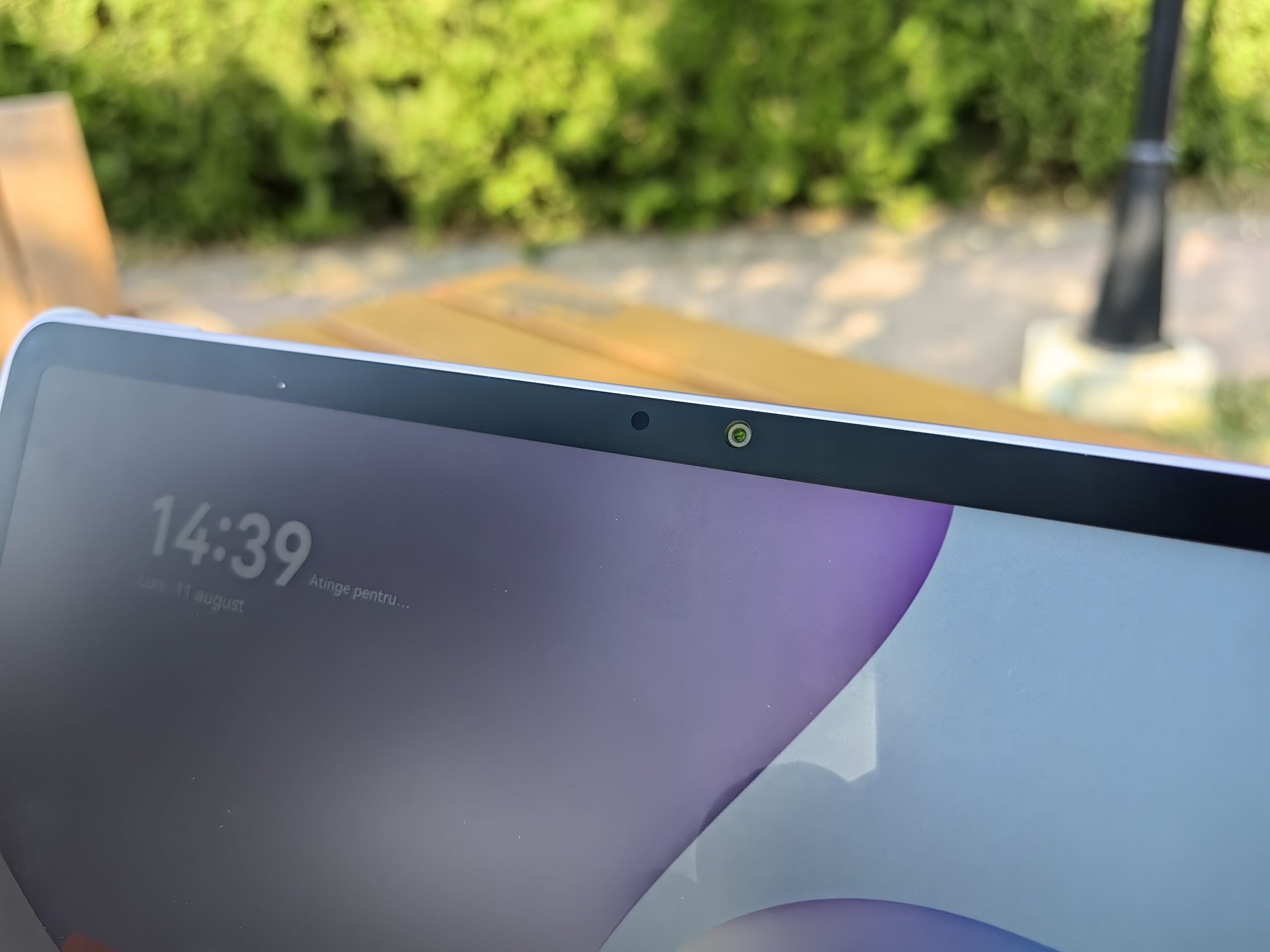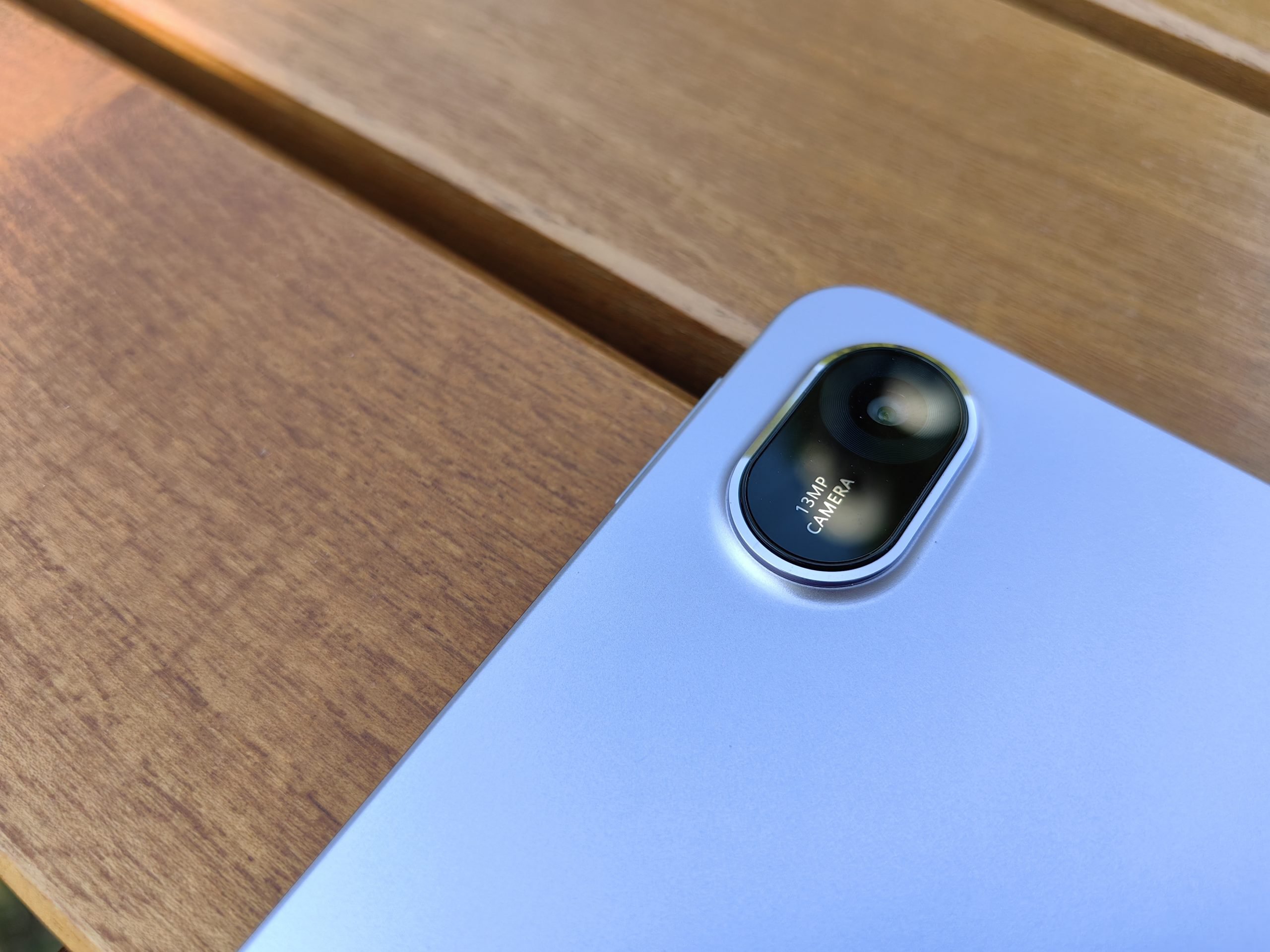 Sunetul este redat de patru difuzoare mari, cu tehnologia Histen 9.0 și Smart Audio Mixer, care îmbunătățește claritatea vocilor la cursuri online sau în conferințe. Camerele – 13 MP pe spate și 8 MP ultra-wide pe față – sunt suficiente pentru poze cu materiale de curs sau apeluri video clare, iar funcția FollowCam te menține centrat în cadru.