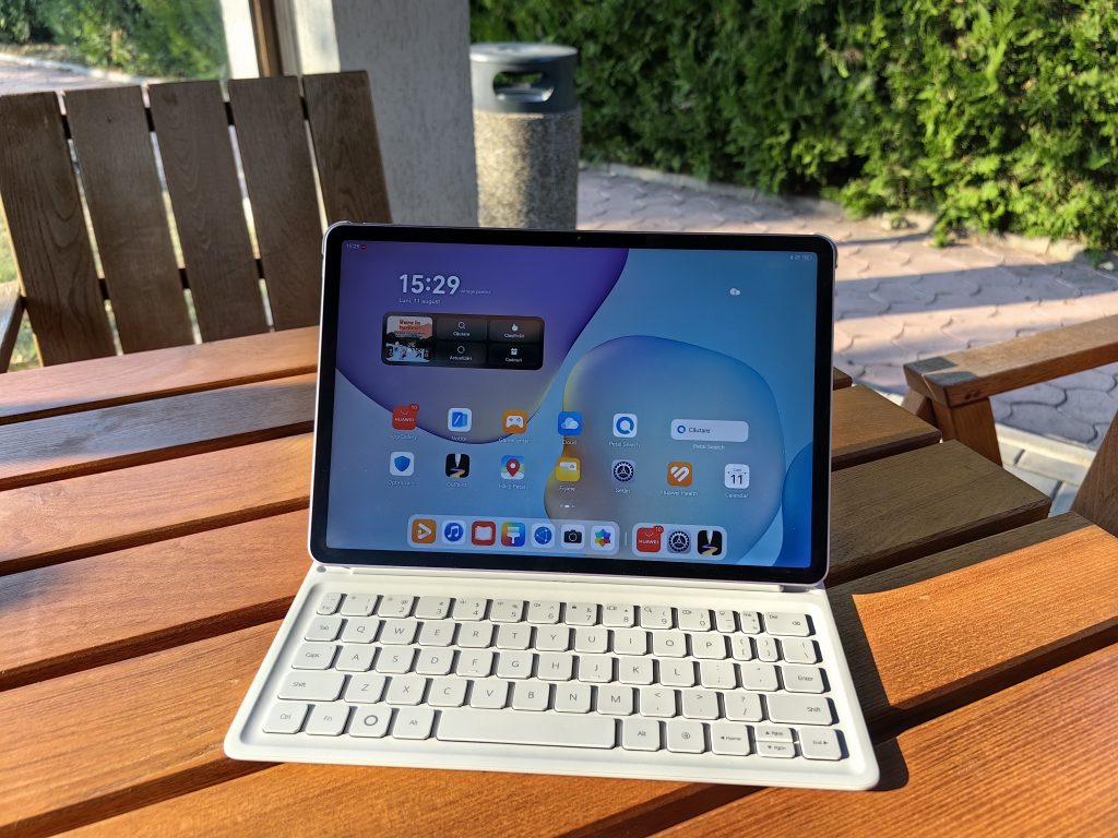 În timp ce tastatura Smart Keyboard îți permite să transformi tableta într-un mini-laptop: este detașabilă, ușoară (cântărește aproximativ 435 g), cu taste spațioase și responsive, include peste 40 de shortcut-uri care reproduc experiența unui laptop. Ambele accesorii amplifică funcțiile multitasking aflate în HarmonyOS 4.3, cum ar fi ferestrele redimensionabile și SuperHub — astfel, tableta trece de la scroll la scris, editat rapid și conectivitate extinsă într-un flux natural.