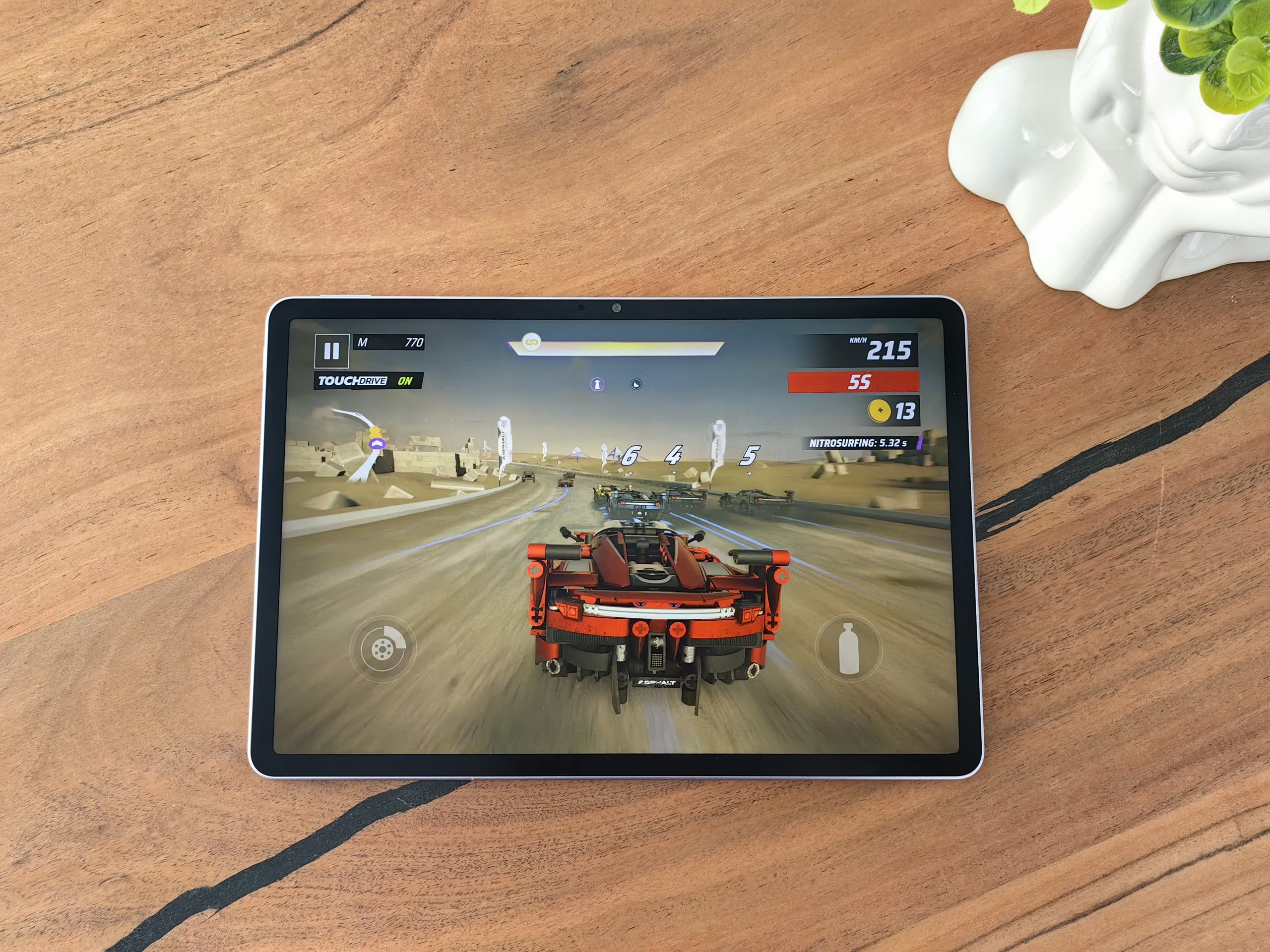 Greutatea de 515 g e suficient de mică pentru a o ține într-o singură mână, dar fără a crea impresia că s-a făcut rabat la calitate. Tableta este disponibilă în nuanțele Violet și Gri Spațial, concepute să se integreze într-un mediu de lucru modern sau într-un setup minimalist. Încape perfect într-un rucsac sau o geantă de curs.