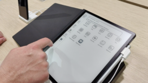 Vine cu un ecran de tip PMMA, ce imită într-un mod autentic hârtia. Folosește tehnologia Smart Refresh care se ajustează în funcție de conținutul vizualizat, conferind o experiență de citire lină și clară. Ecranul poate fi splituit pentru o eficiență cât mai bună.