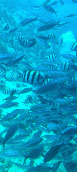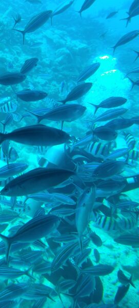 Noul senzor principal este mult mai luminos și asta se vede în special la fotografia în condiții slabe de luminozitate, acolo unde se dă testul suprem pentru smarphone-uri. După cum poți vedea reușește să capteze detalii și texturi pe care cu ochiul liber eu nu am reușit să le văd. Uite-te la frunzele palmierilor cât de bine sunt redate, iar aici pliurile cearșafului de la baldachin sunt foarte clare, stuful de deasupra are neașteptat de multe detalii. Aici de exemplu eram într-un submarin, la 25 m sub apă. Uite cât de bine este surprins bancul de pești și scafandrul. Și pentru că am mai multe cadre care mi-au plăcut, mai las câteva aici cu care să te delectezi.