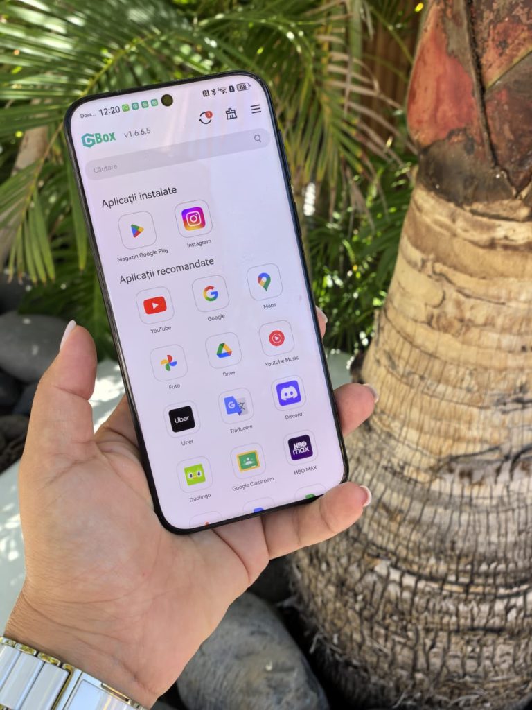 Pe de altă parte, GBox oferă un mediu virtual în care ai acces la Google Play Store și aplicațiile care de obicei solicită servicii Google nativ. Prin GBox poți descărca aplicațiile care nu se găsesc în AppGallery, sau cele care nu funcționează corect fără GMS, precum anumite aplicații bancare, de fitness sau jocuri care verifică API-urile Google.