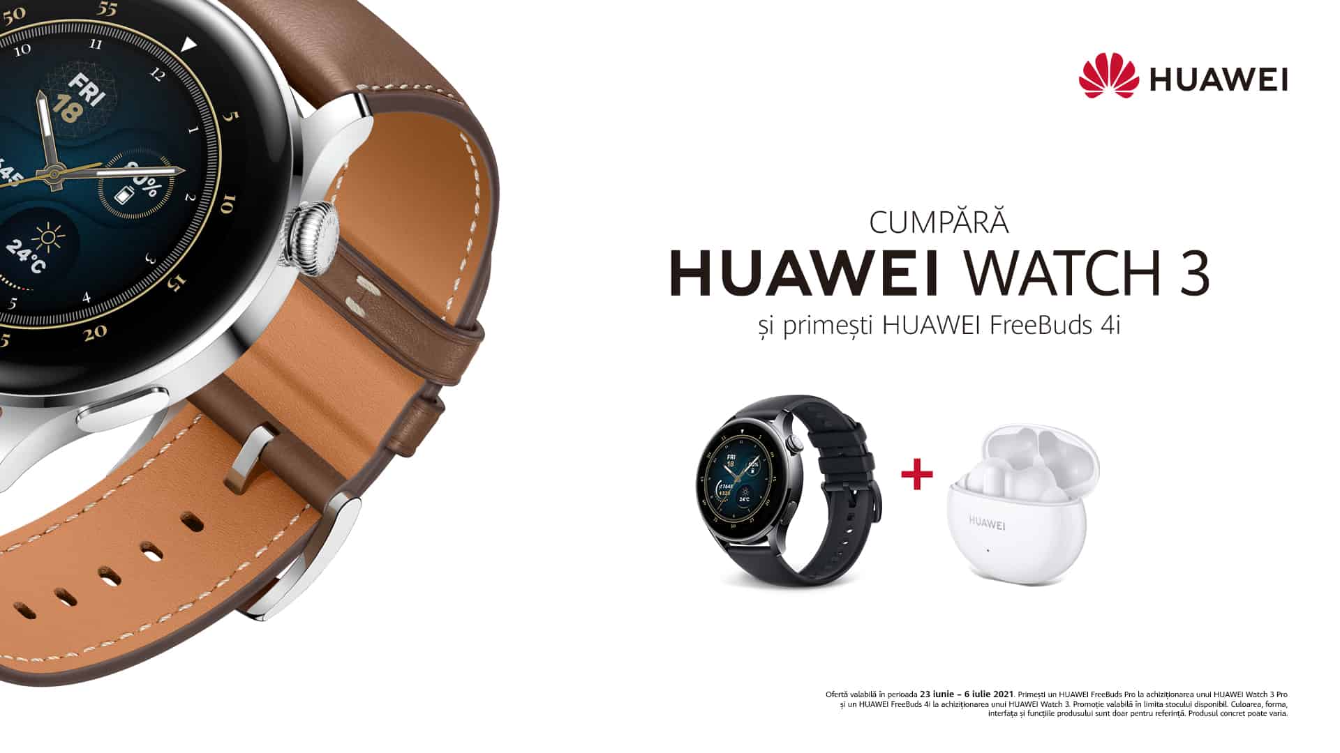 – Huawei Watch 3 – 1699 lei + CADOU o pereche de căști FreeBuds 4i