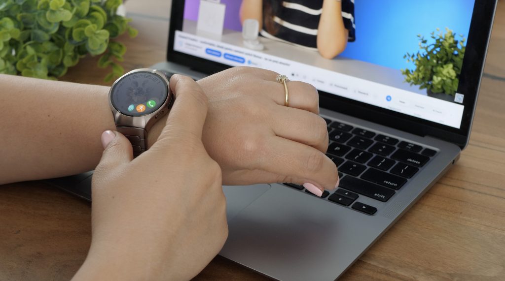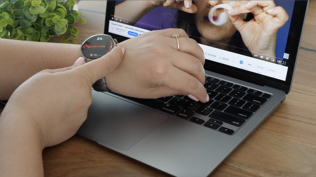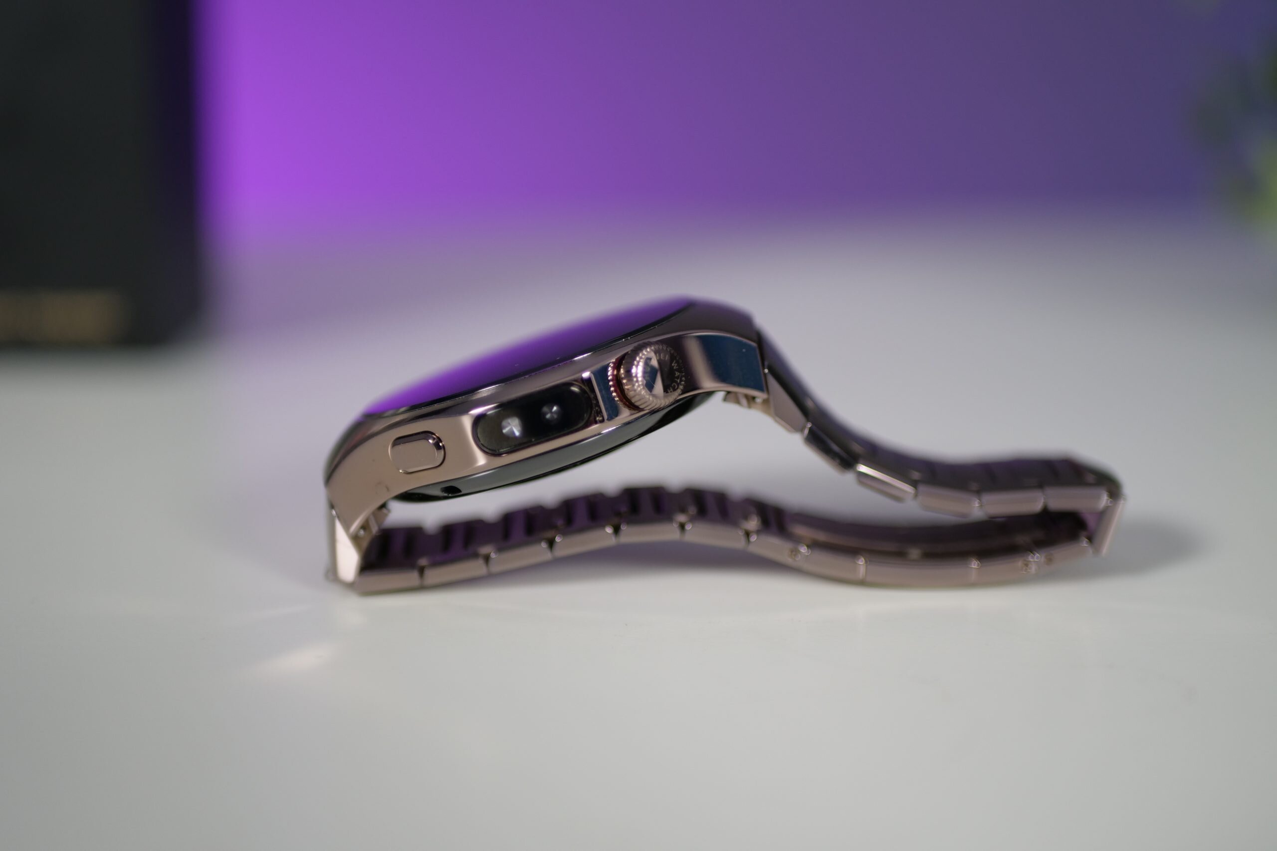 Totul este posibil datorită senzorilor amplasați strategic – ceasul preia semnalul din vârful degetului, unde circulația sângelui este mai densă și pielea mai subțire, ceea ce duce la o precizie superioară față de măsurarea la încheietură.