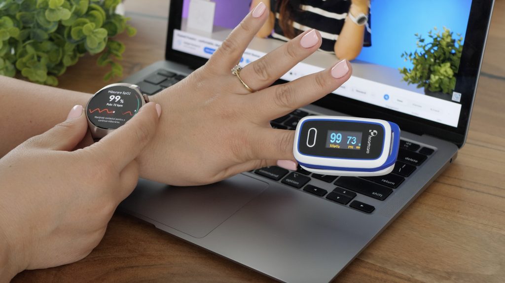 Pentru a vedea acuratețea datelor am realizat și câteva teste. Deși pandemia a trecut, adesea ne confruntăm cu diferiți viruși, unii mai agresivi ca alții, așadar măsurarea nivelului de oxigen din sânge este necesară, iar dacă opțiunea aceasta este la încheietura mâinii, cu atât mai bine. Dar ce acuratețe are funcția față de un dispozitiv medical. Am făcut un test comparativ între un pulsoximetru și ceas. Iată și rezultatul. Ei bine rezultatele au fost similare. Așadar, ceasul poate fi folosit cu încredere pentru a verifica acești indicatori, ori de câte ori este nevoie.