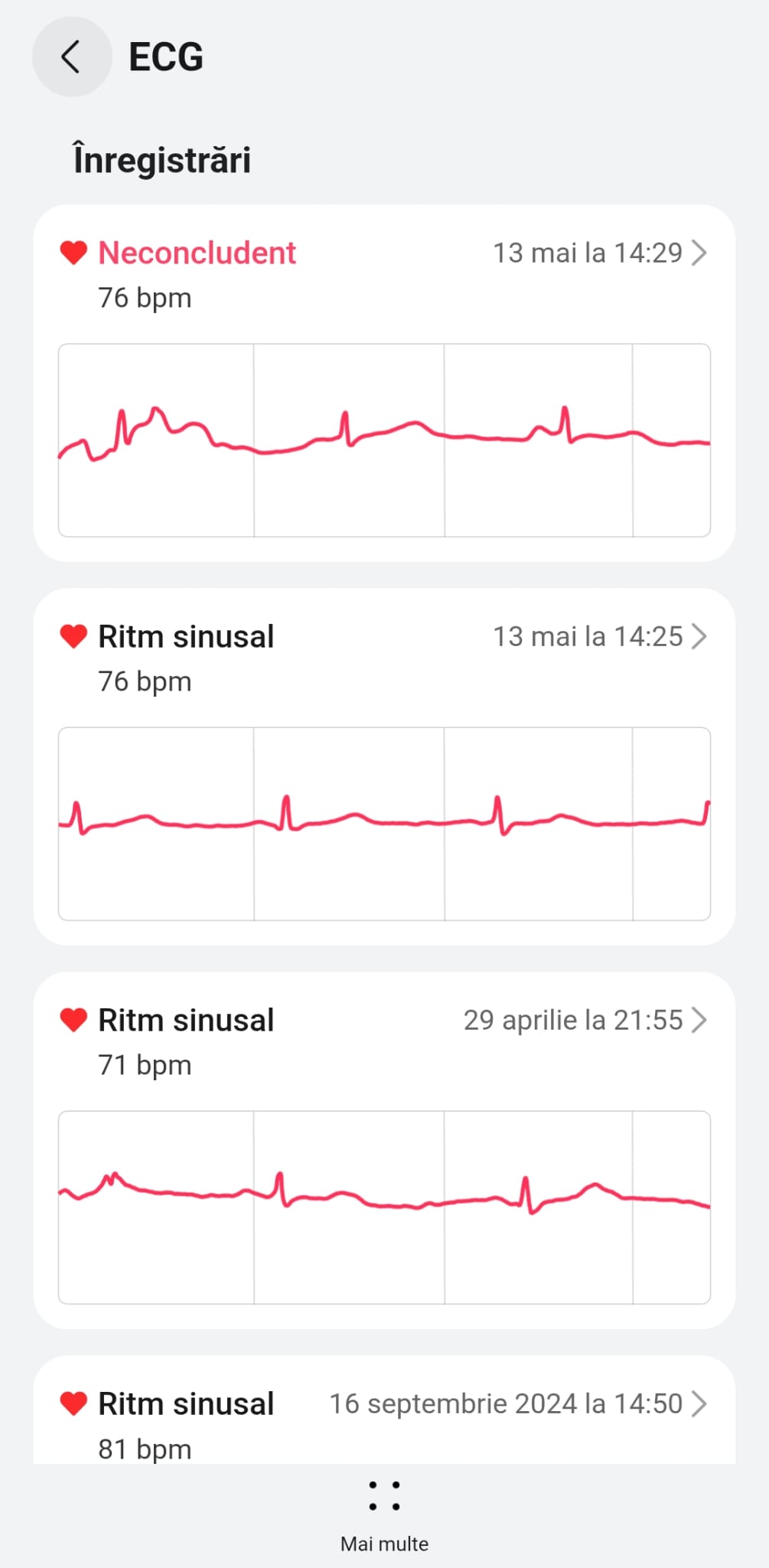 Important de menționat este că doar funcția EKG este acreditată medical. Restul indicatorilor – cum ar fi HRV, SpO₂ sau ritmul cardiac – sunt la nivel avansat, dar rămân în zona consumer.