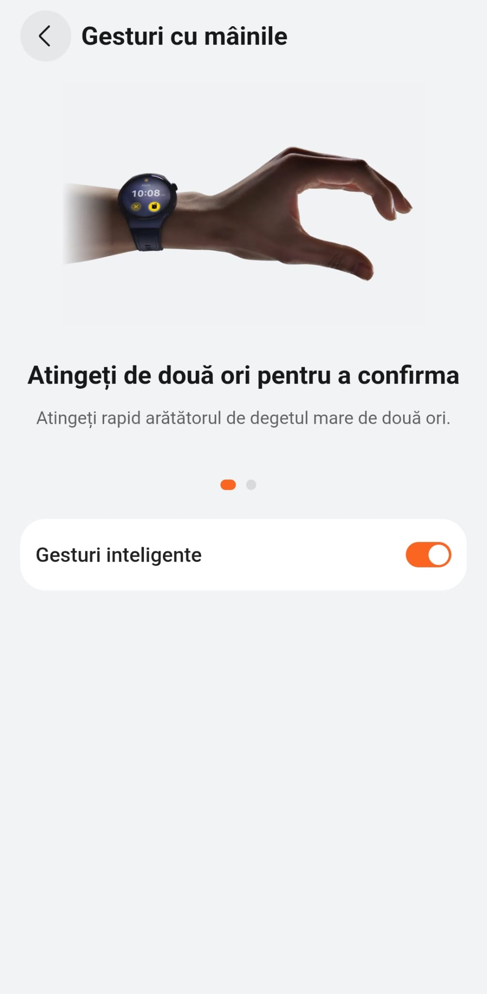 Un alt element nou și interesant este controlul prin gesturi: cu un simplu double tap între degete, poți răspunde la apeluri sau controla muzica fără să atingi ecranul – util mai ales când ai mâinile ocupate.