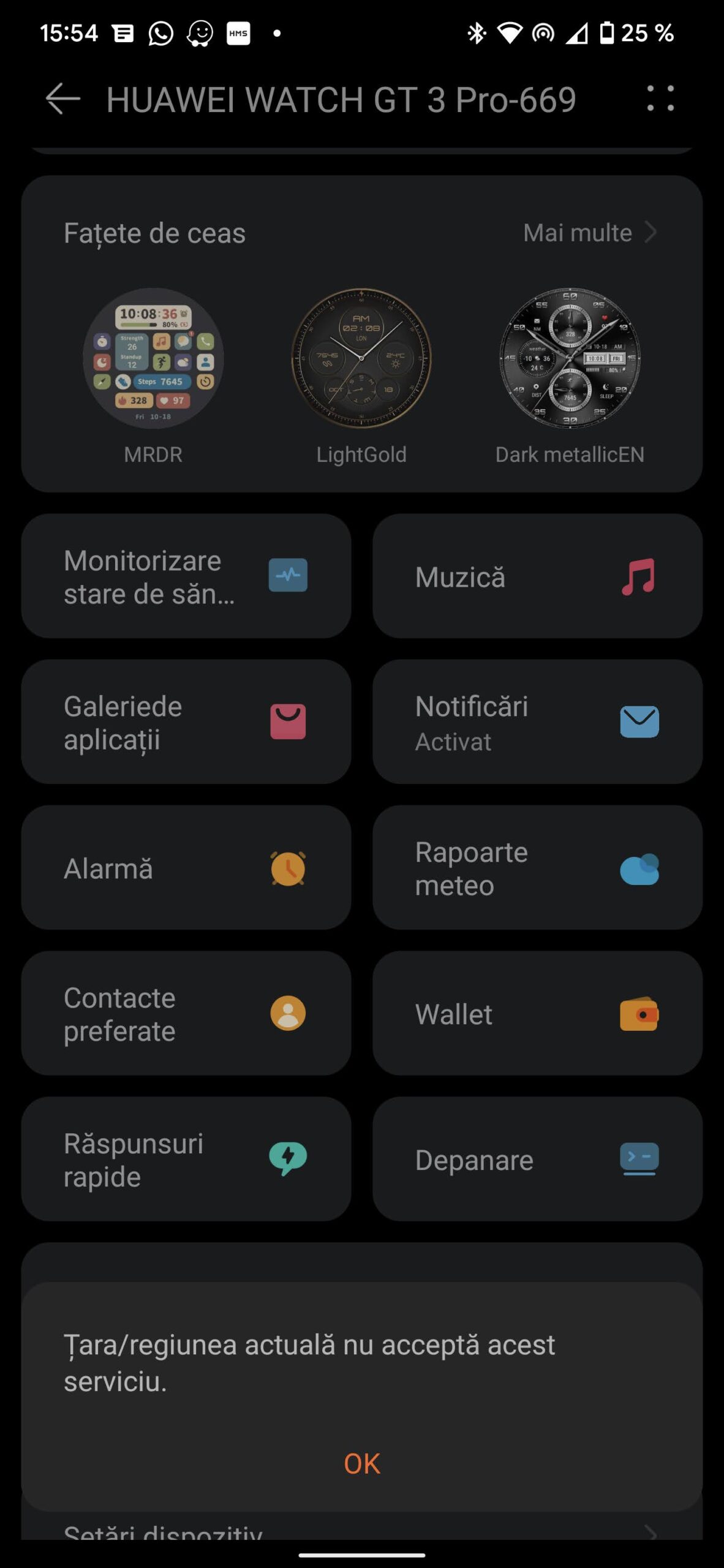 Are și NFC, însă din păcate deocamdată Huawei Wallet nu funcționează momentan pentru țara noastră, prin urmare nu poți folosi telefonul deocamdată pentru plata cu cardul. Chiar mi-aș fi dorit să pot plăti direct cu ceasul, dar cine știe poate la următorul update aflăm că putem face asta.