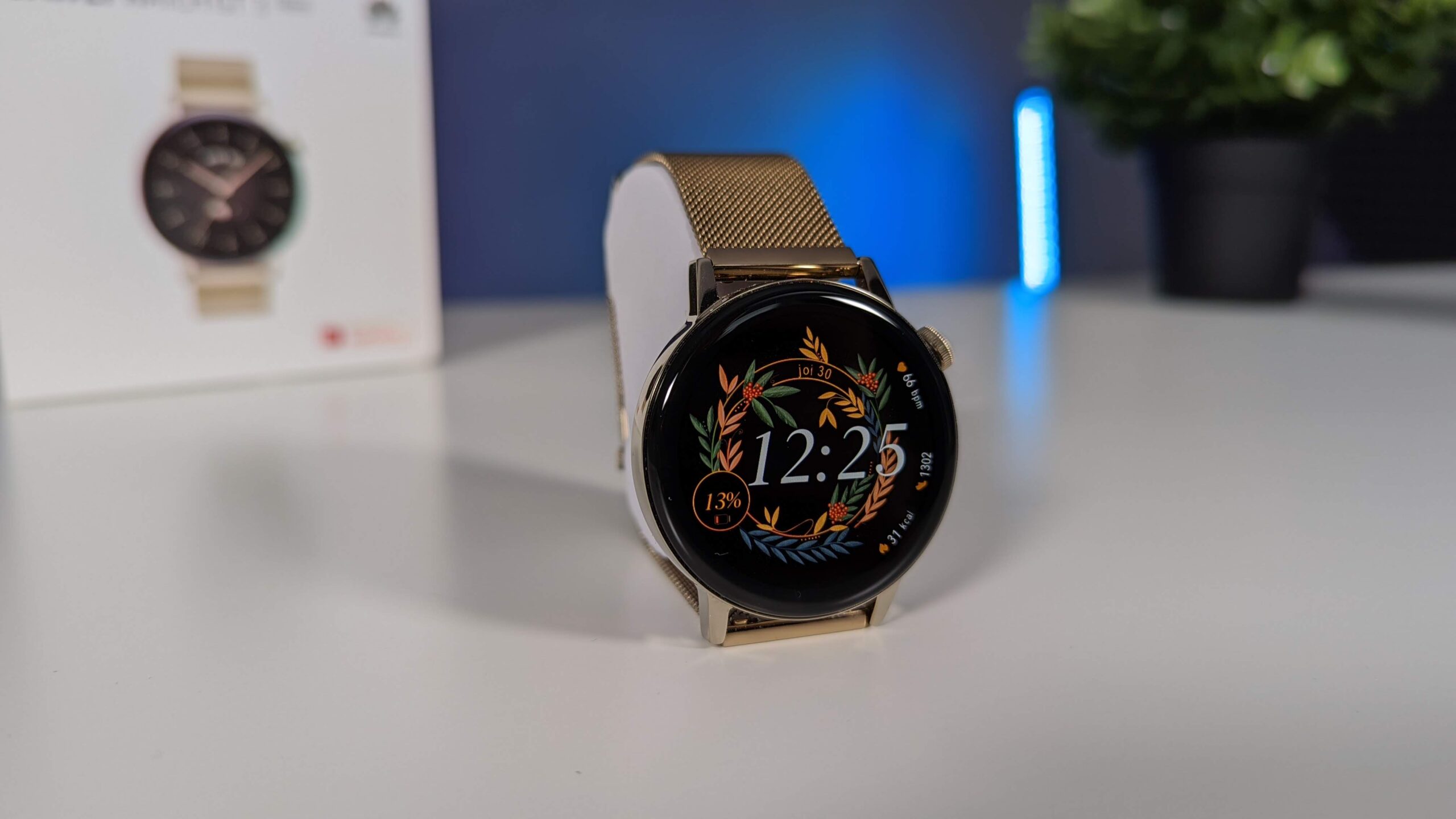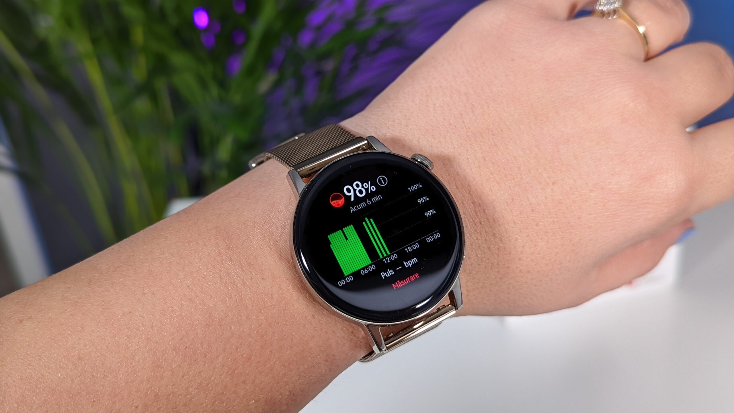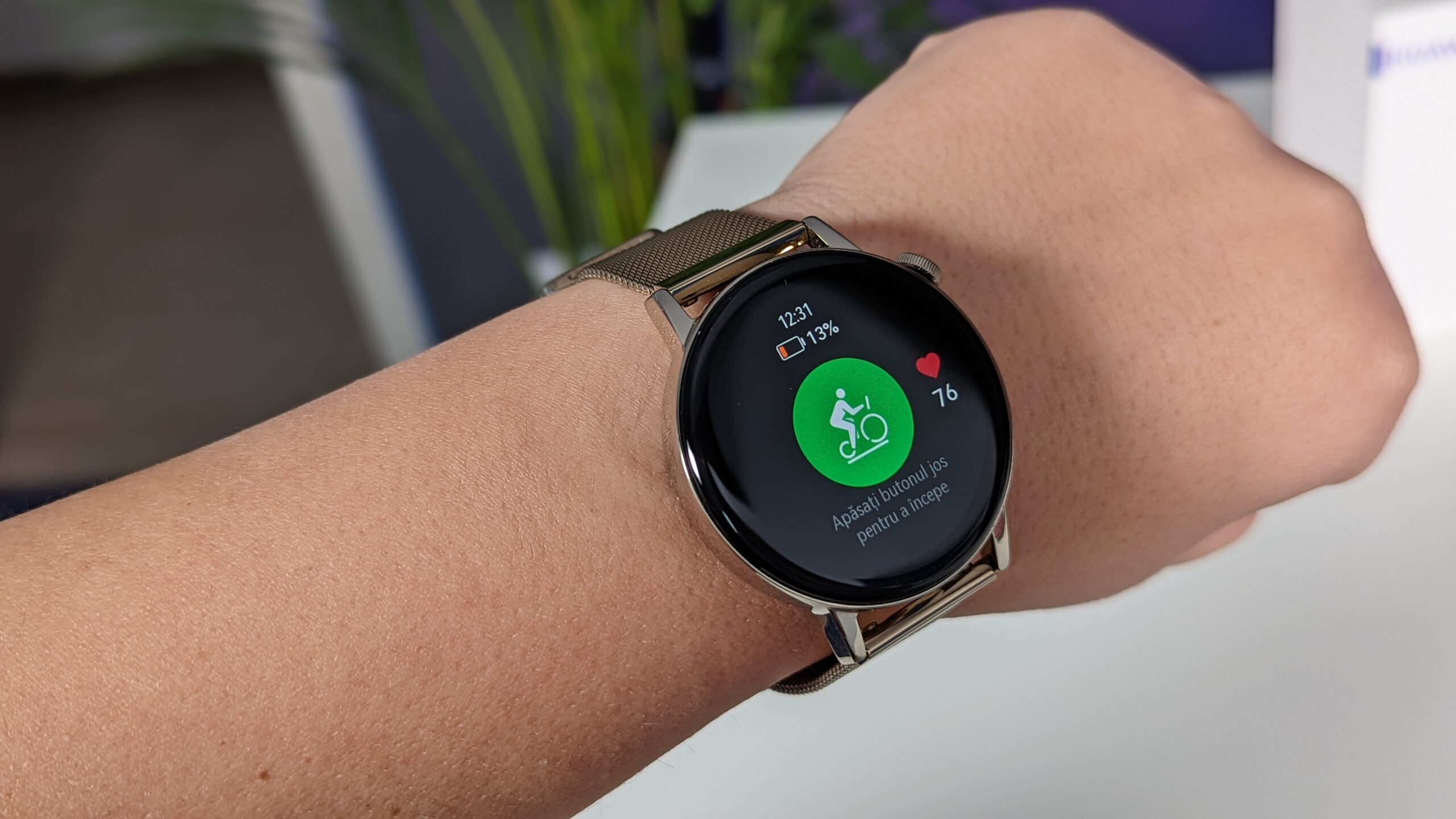 Eu am primit varianta Watch GT 3 Gold Elegant, cea cu curea milaneză, dar domnilor nu părăsiți acest articol căci smartwatch-ul vine și în versiune masculină, cu aceleași funcții și experiențe pe care le voi detalia în cele ce urmează.
