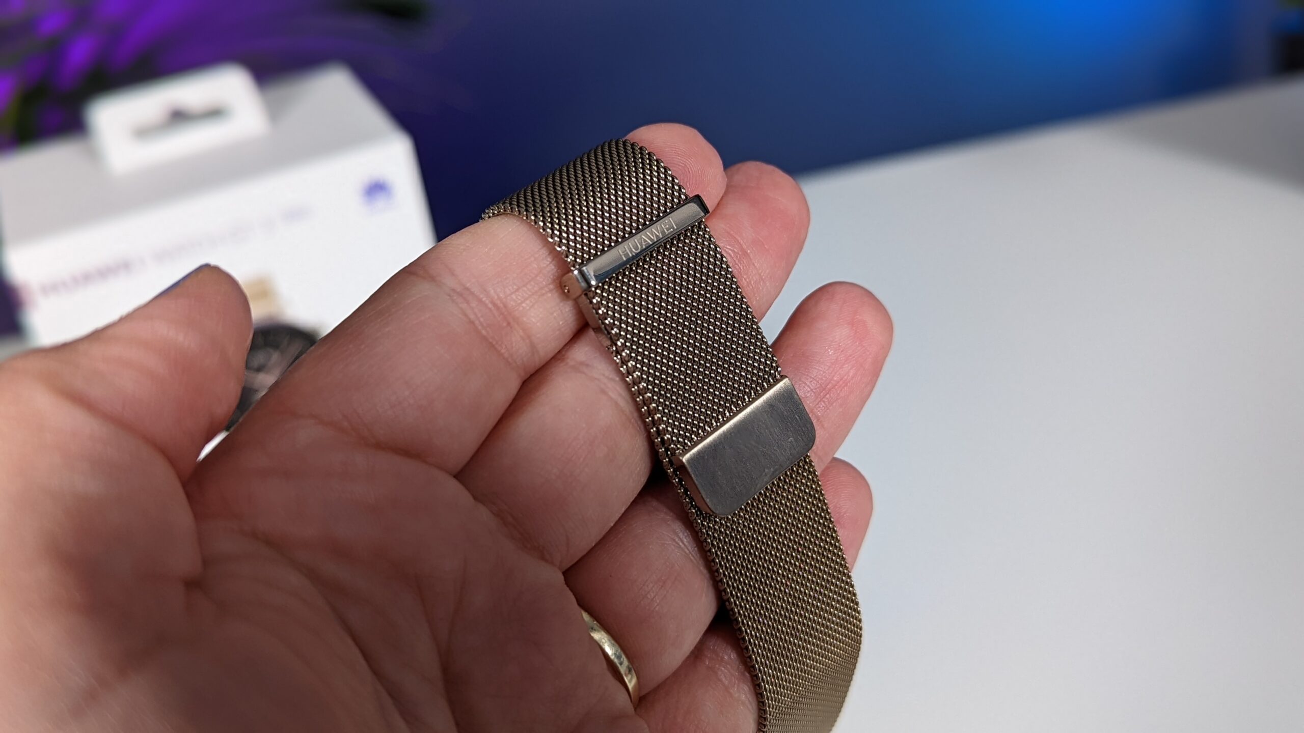 Brățara din oțel inoxidabil este magnetică și se poate ajusta cu ușurință pe dimensiunea dorită de utilizator. Adică, o poți purta mai largă, așa cum se obișnuiește la ceasurile cu acest gen de brățară sau o poți purta mai strâns pe încheietură, astfel încât să nu te deranjeze atunci când dormi. În cazul meu, îți voi spune că este primul ceas cu brățară metalică pe care l-am putut ține la mână pe durata somnului, fără să mă deranjeze. Watch GT 3 este realizat din oțel inoxidabil și plastic pe spate. De aici și greutatea ceva mai redusă față de gama Watch 3. Ce nu mi-a plăcut la această brățară, a fost faptul că ocazional se întâmpla să îmi mai agăț câte un fir de păr în ea.
