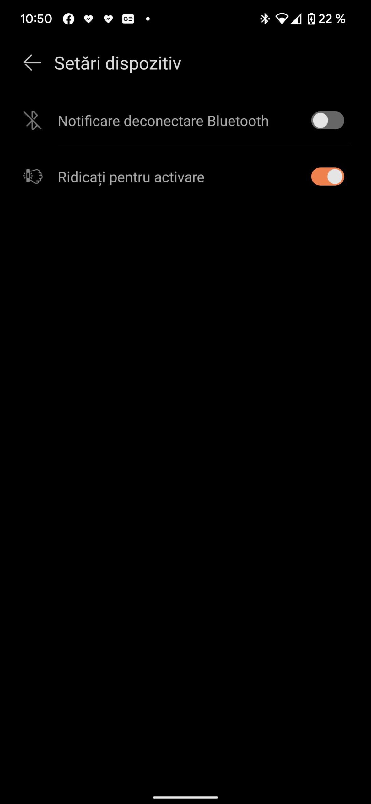 Meniul este foarte intuitiv, se mișcă bine, nu am ce să îi reproșez. La o glisare de sus în jos se dezvăluie un meniu cu câteva butoane: Setări, Scurgeți. Pentru că ceasul are și o certificare 5ATM, pot fi situații în care vei intra cu el în apă, iar ca difuzorul să nu rămână plin de apă, cu această setare Scurgeți, ceasul eminte niște sunete la anumite frecvențe astfel încât apa să iasă afară din orificiile difuzorului. Ce mai avem în acest meniu? Găsire telefon, Nu deranjați, Alarma și Ecran aprins.