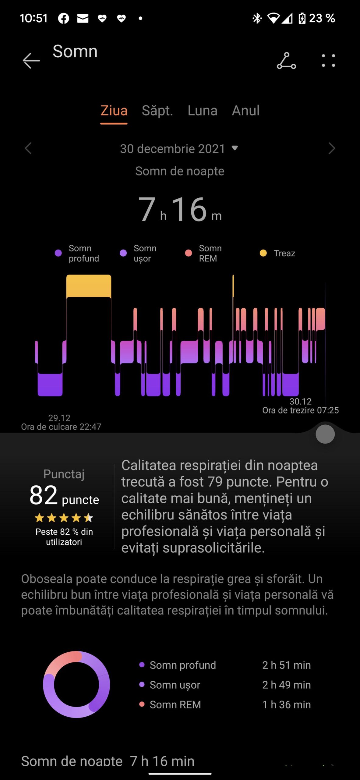 Uite că am vorbit atât de mult despre ceas și nu am zis nimic despre aplicația de telefon și despre compatibilitate. Ei bine, ceasul poate funcționa și cu un telefon cu Android și cu un iPhone, dar și cu un telefon cu Harmony OS, evident. Există aplicația Huawei Health care se poate instala pe orice telefon și prin intermediul căreia poți face personalizările ceasului, dar și monitorizarea activităților sportive sau de somn. Totul a fost gândit încât să nu ai mare nevoie de aplicație. După setarea inițială, cam tot ce vrei, se întâmplă independent pe ceas.