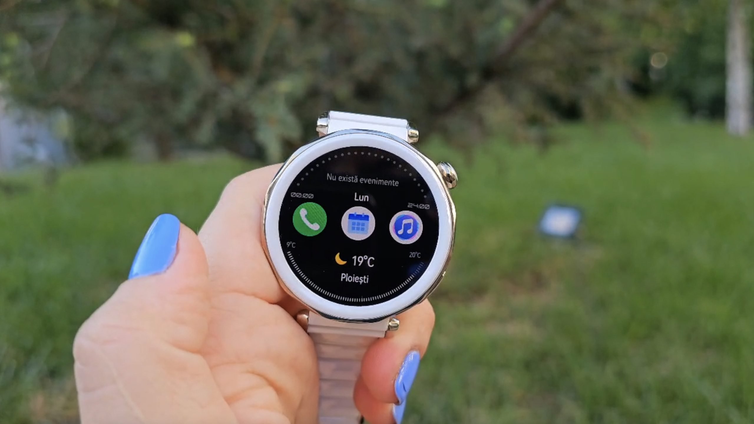 Ceasul poate fi folosit atât cu un telefon cu Harmony OS, cât și cu un Android sau cu iPhone. Se instalează aplicația Huawei Health, prin intermediul căreia se personalizează ceasul după dorințele utilizatorului. De aici îți poți monitoriza activitatea sportivă, calitatea somnului, menstruația, greutatea, îndeplinirea obiectivelor, nivelul de stres, pașii sau ritmul cardiac. Tot aici găsești și o serie de antrenamente, care să te ajute atunci când vrei să faci mișcare.