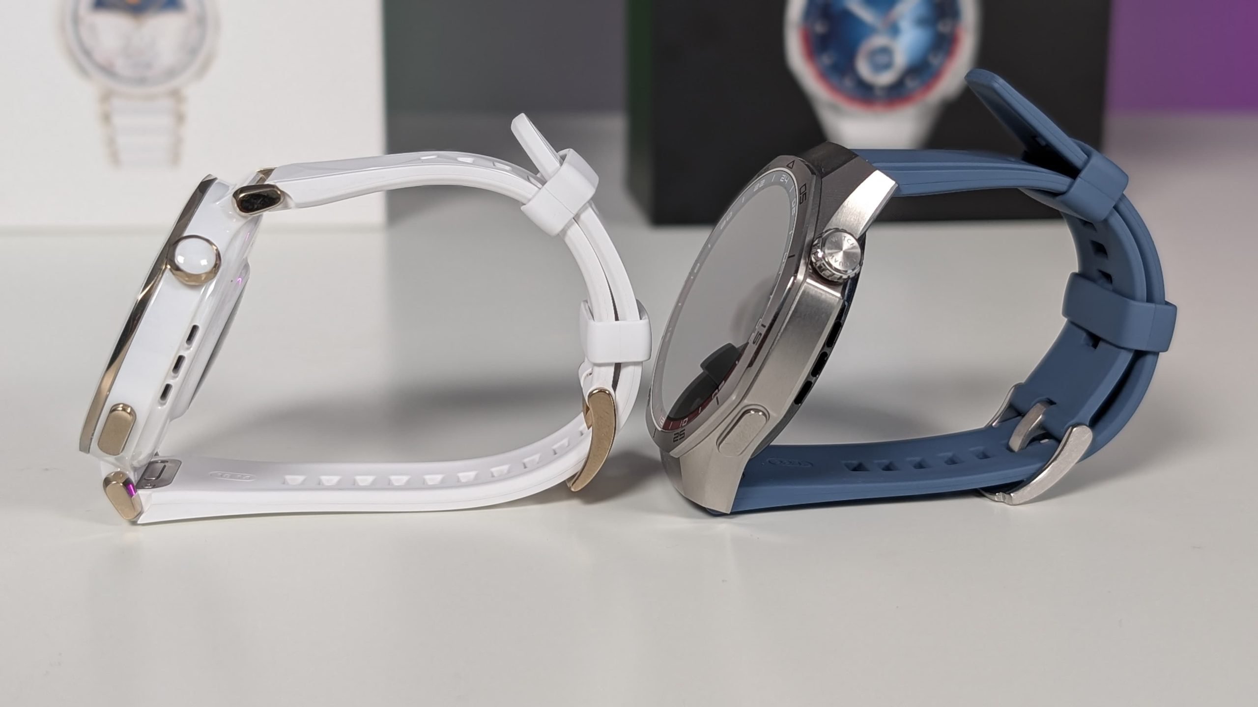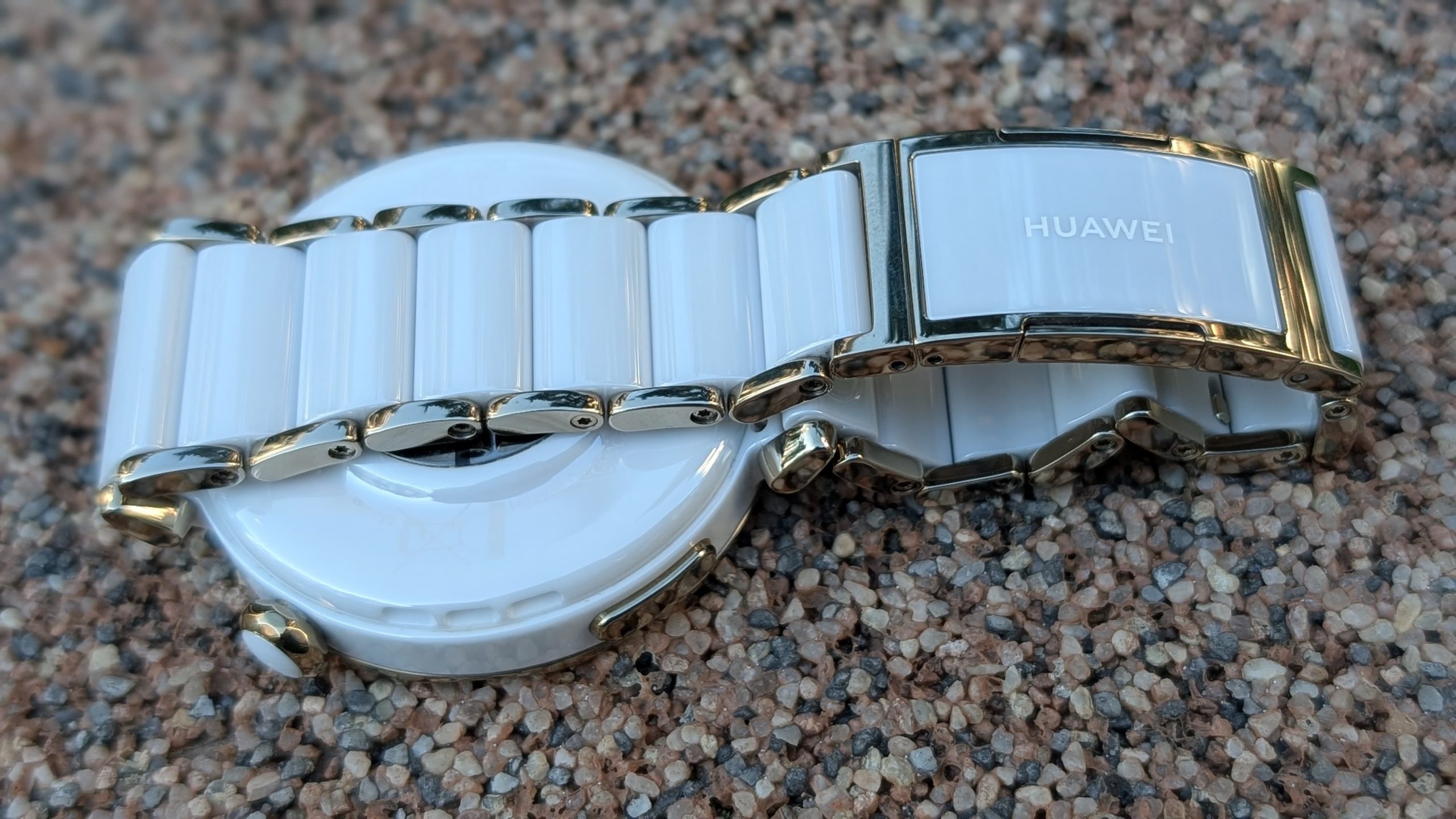 Design-ul deosebit este primul element prin care Huawei Watch GT 5 Pro atrage atenția. Modelul bărbătesc de 46mm este fabricat din titan aerospațial—un material extrem de durabil, dar ușor. Acesta oferă ceasului un aspect robust, dar totodată rafinat, fiind perfect atât pentru ocazii formale, cât și pentru activități outdoor. Ca și în cazul modelului anterior, partea feminină este răsfățată cu un model realizat din ceramică nanocristalină, albă, de 42 mm, doar că de data aceasta este ceva mai fin, mai elegant și mai ușor, cântărind 87g cu brățară(comparativ cu 100g cât cântărea Watch GT 3 Pro) și 44g fără ea(comparativ cu 50g). Pe cadran avem aceleași accente aurii, însă de data aceasta le regăsim și pe brățara, care își modifică forma. Este mai subțire, mai finuță, mai versatilă aș spune eu. Dacă la vechea generație, brățară era ceva mai masculină, acum vedem un model mai feminin, care poate accesoriza orice tip de ținută: de la cea sport, la cea de birou, smart casual sau de ce nu chiar și o ținută elegantă, de seară.