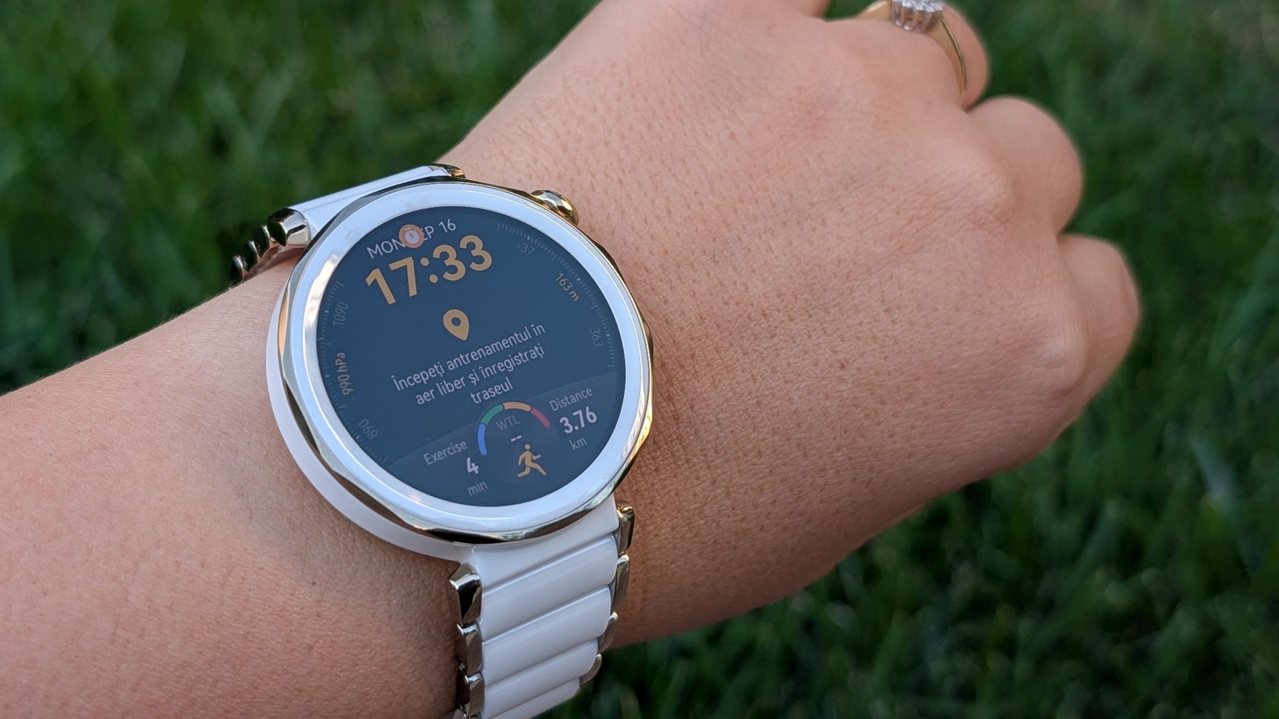 Ecranul AMOLED de 1,32 inch de pe GT 5 Pro este probabil, printre cele mai bune pe care le-am văzut la un smartwatch. Cu o luminozitate excelentă și culori vibrante, display-ul superb este vizibil chiar și în condiții de lumină puternică. La 46mm, modelul bărbătesc oferă un ecran mai mare, ceea ce face navigarea prin meniuri și citirea notificărilor foarte ușoară. Versiunea feminină de 42mm nu face compromisuri nici aici, chiar dacă ecranul este mai mic.